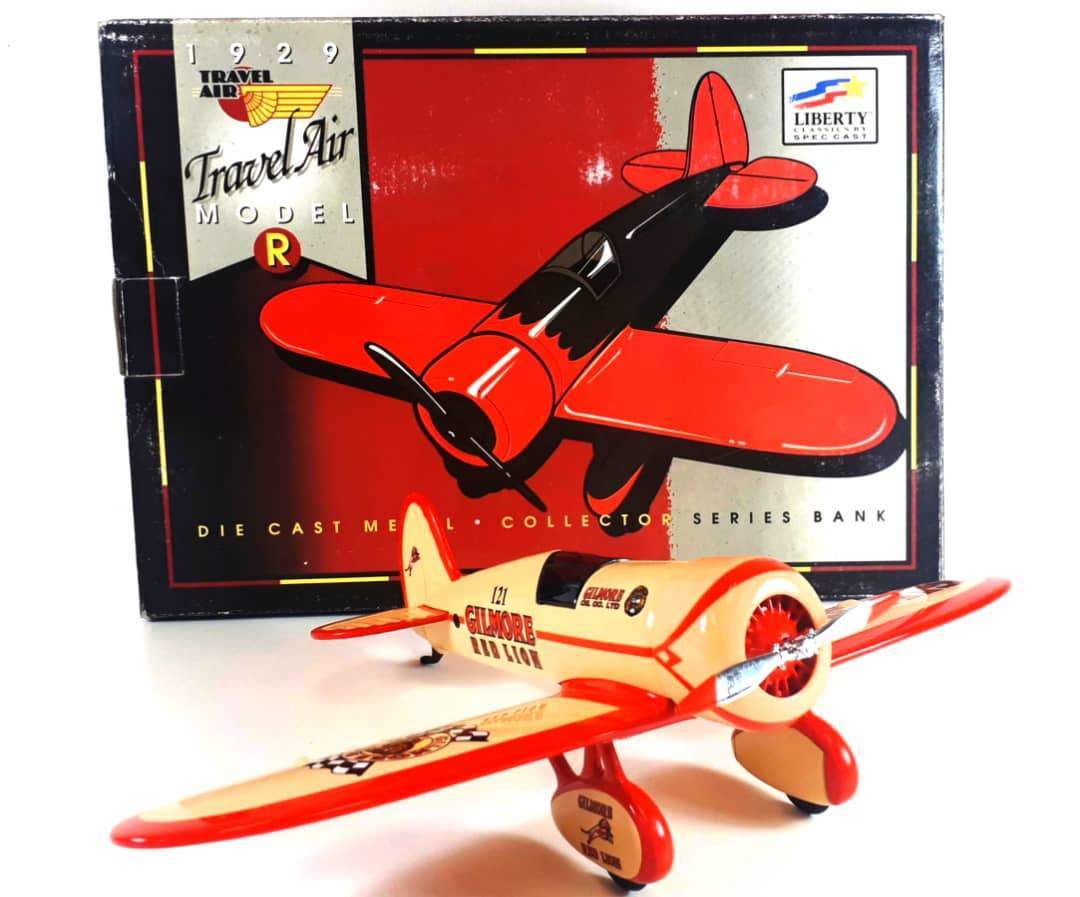 The travel air airplane bank is made of diecast metal with accurate detailing achieved with all logos being pad printed directly onto the plane. It weighs over one pound and is an accurate scale model of the original TRAVEL AIR MODEL R. This replica is 8 1/2 inches long with an 11 inch wing span. Note: As item is limited edition collection, the box may have minor scratches and faded colours.