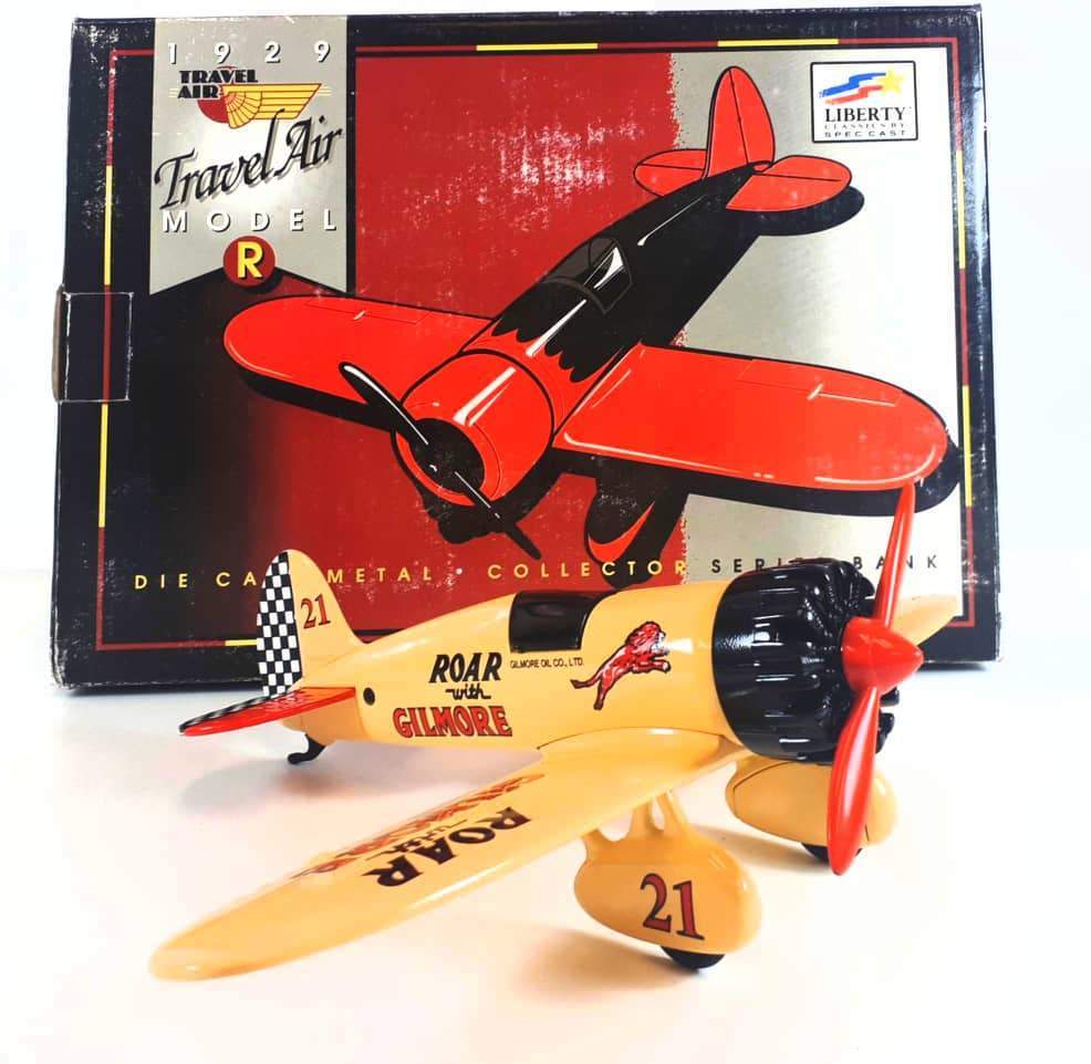 1929 Travel Air Model R. Die cast collectible. Stock #40024. Made by Liberty Classics Inc. exclusively for Racing Champions Inc. 1993.Vintage Airplane Bank: 1929 Travel Air Model R. Die cast collectible. Stock #40024. Made by Liberty Classics Inc. exclusively for Racing Champions Inc. 1993. New in box, box shows wear. Airplane Bank Measures: 8? long x 11? wide x 3? inches tall. Note: As item is limited edition collection, the box may have minor scratches and faded colours.