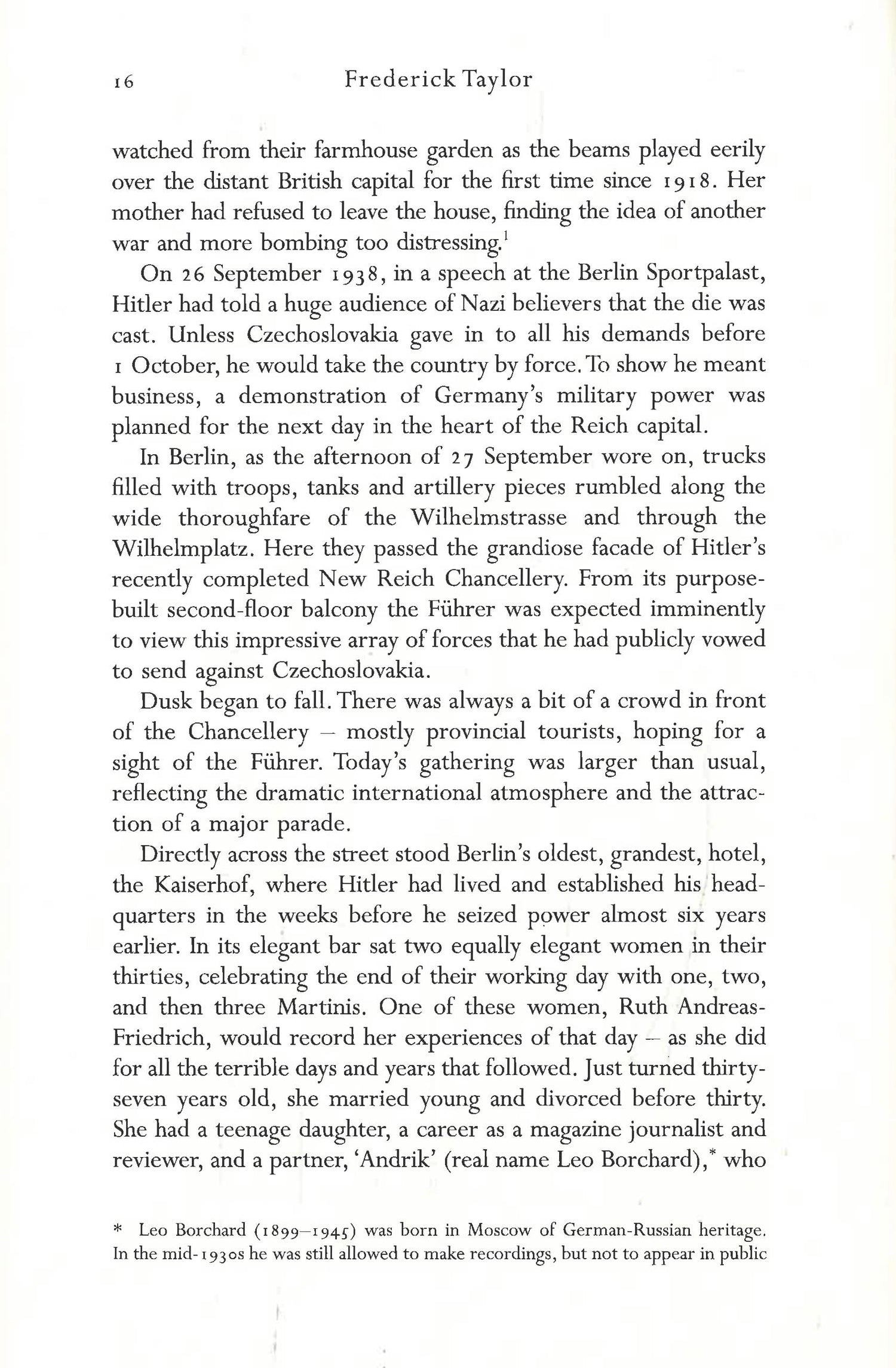 Frederick Taylor, author of renowned histories of the Berlin Wall and the bombing of Dresden, highlights the day-to-day experiences of ordinary citizens as well as those who were at the height of power in Germany and Britain. Their voices lend an intimate flavor to this often-surprising account of the period and reveal a marked disconnect between government and people, for few people in either country wanted war.
