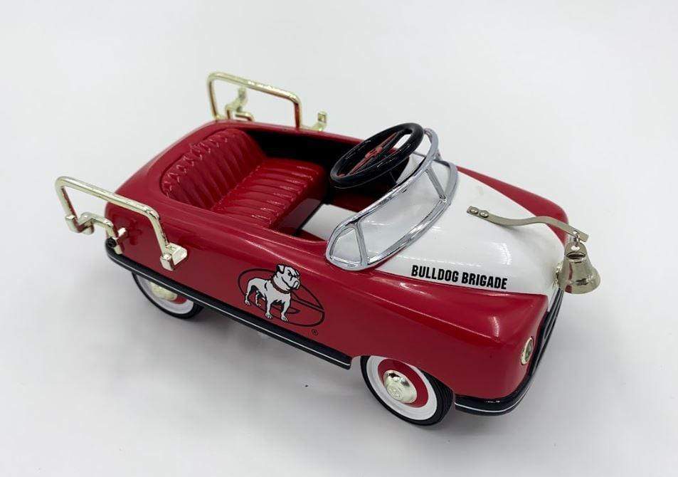 1948 Fire Engine Pedal Car Bank features include die-cast metal replica, sequentially numbered, working headlights & taillights and real pedal action.