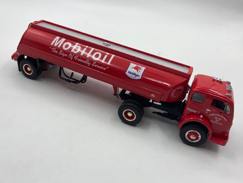1st First Gear Mobil Oil 1953 White 3000 Tractor with Tank Trailer 1/34 NIB. Still wrapped in tissue and plastic. Note: As item is limited edition collection, the box may have minor scratches and faded colours.