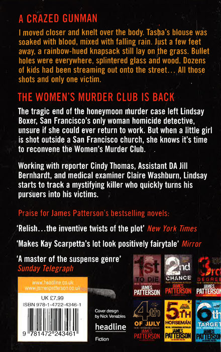 A brutal madman sprays bullets into a crowd of children leaving a San Francisco church. Miraculously-or was it intentionally?-only one person dies. Then an elderly black woman is hung. Police homicide inspector Lindsay Boxer senses a connection and together with medical examiner Claire, assistant D. A. Jill, and Chronicle reporter Cindy, finds a link that sends a chill through the entire nation. This killer's motives are unspeakable.