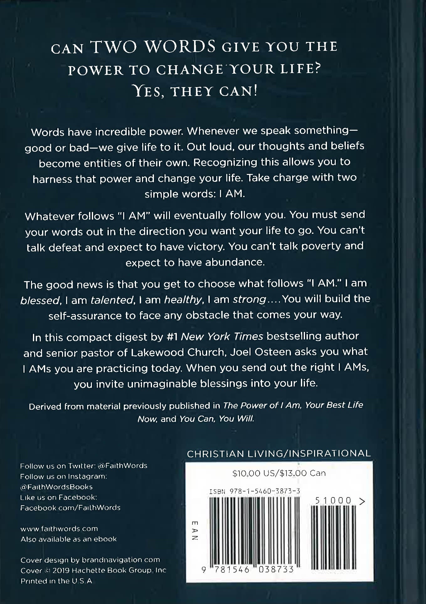 Change your life through two simple words with this compact book based on The Power of I Am by #1 New York Times bestselling author and Lakewood Church pastor Joel Osteen.