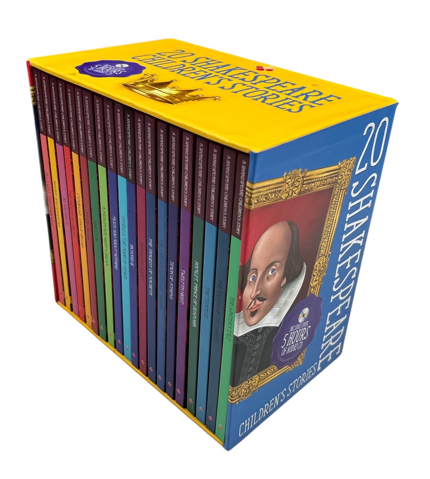 This boxed set is the perfect way to introduce older children to Shakespeare. Includes 20 books as well as 5 hours of audio CD. All's WellThat Ends Well Antony and Cleopatra As You Like It The Comedy of Errors Cymbeline, King of Britain Julius Caesar King Lear A Midsummer Night's Dream Much Ado About Nothing Othello, The Moor of Venice Richard III Romeo and Juliet The Tragedy of Macbeth The Two Gentlemen of Verona Timon of Athens Twelfth Night Hamlet, Prince of Denmark The Tempest The Taming of the Shrew The Winter's Tale