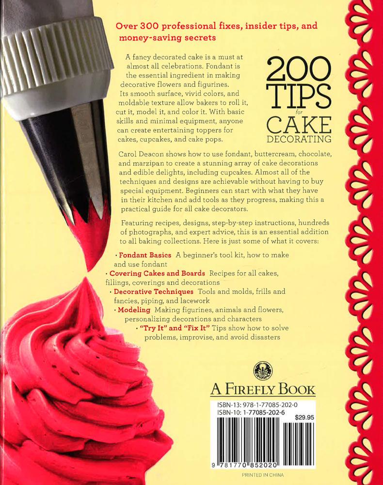 An indispensable compendium of essential knowledge and troubleshooting tips. Tapping into the hottest (and most persistent) trend in the craft cooking market, this book is crammed with information on the art and craft of using fondant. Today, a tastefully decorated cake is expected for birthday parties, weddings and any important celebration. A simple iced cake without a handmade fondant character or flowers is downright dull, no matter how good it may taste. 200 Tips for Cake Decorating shows why fondant is so popular. Its smooth surface, vivid colors and moldable texture allow bakers to roll it, cut it, model it and color it. With basic skills and minimal equipment, bakers can create entertaining toppers for cakes and cupcakes.