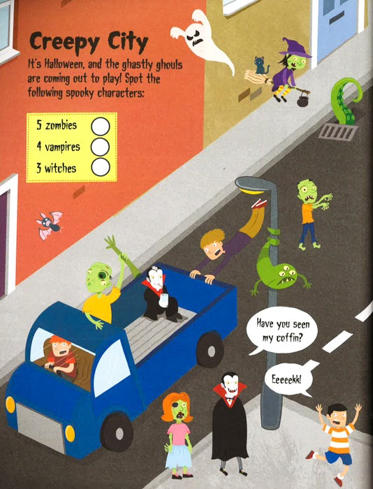 Enter at your peril... Get busy scribbling, puzzling, sticking and sketching in a world of haunted houses, gruesome ghosts, and spooky skeletons. Then choose from 2000 scary stickers to complete each page! 2000 Stickers Spooky has 36 freaky and creepy activities to do.