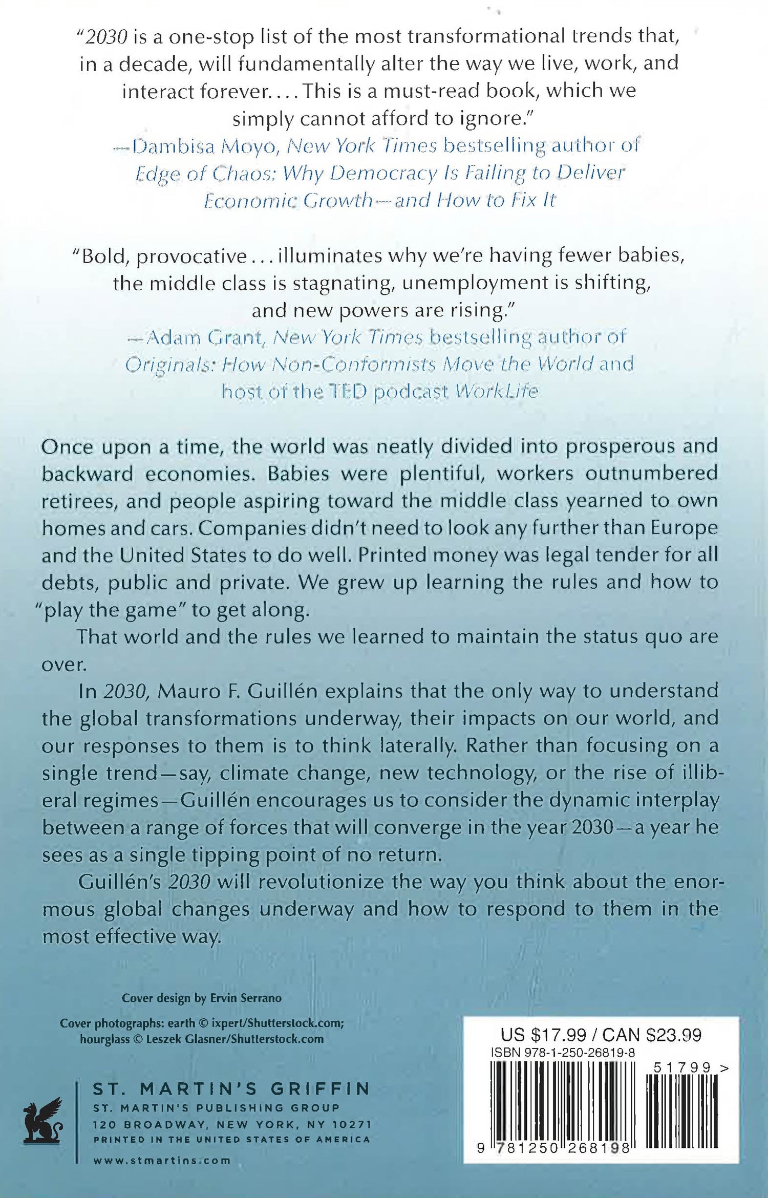 According to Mauro F. Guillen, the only way to truly understand the global transformations underway--and their impacts--is to think laterally. That is, using "peripheral vision," or approaching problems creatively and from unorthodox points of view. Rather than focusing on a single trend--climate-change or the rise of illiberal regimes, for example--Guillen encourages us to consider the dynamic inter-play between a range of forces that will converge on a single tipping point--2030--that will be, for better or worse, the point of no return.