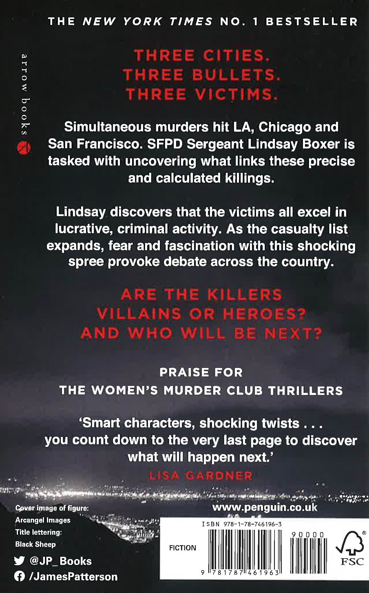 The Women's Murder Club face the fight of their lives in this bestselling instalment in the James Patterson series__________________________________THREE CITIES. THREE BULLETS. THREE VICTIMS.Simultaneous murders hit LA, Chicago and San Francisco. SFPD Sergeant Lindsay Boxer is tasked with uncovering what links these precise and calculated killings.Lindsay discovers that the victims all excel in lucrative, criminal activity. As the casualty list expands, fear and fascination with this shocking spree provoke debate across the country.Are the killers villains or heroes? And who will be next?__________________________________PRAISE FOR THE WOMEN'S MURDER CLUB THRILLERS'Smart characters, shocking twists . . . you count down to the very last page to discover what will happen next.' Lisa Gardner'Packed with action . . . a compelling read with great set pieces and, most of all, that charismatic cast of characters.' Sun'I couldn't turn the pages quick enough. Great plot, fantastic storytelling and characters that spring off the page - all the right ingredients for a thriller!' Heidi Perks'Fast-moving, intricately plotted . . . Boxer steals the show as the tough cop with a good heart.' Mirror'Terrific, high-octane, really pacy . . . every scene is a film, every character real and every plot point leaves us breathless.' Jo Spain