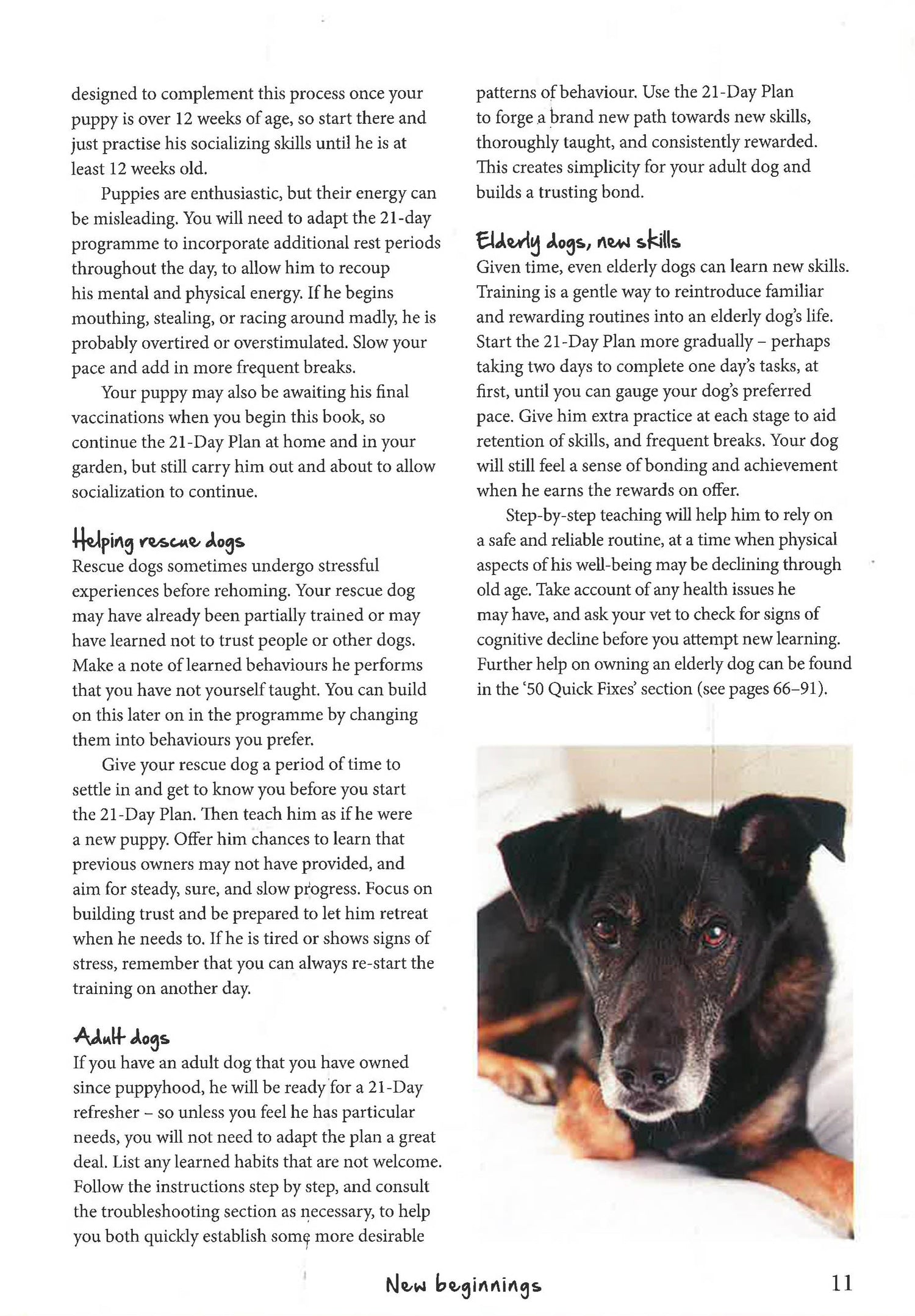The first section helps you to assess your key concerns so that you can tailor the programme to fit your needs, while a 'quick fix' section after the main training plan providing you with 50 speedy solutions to common problems, such as damaging furniture or unsociable behaviour towards strangers.
