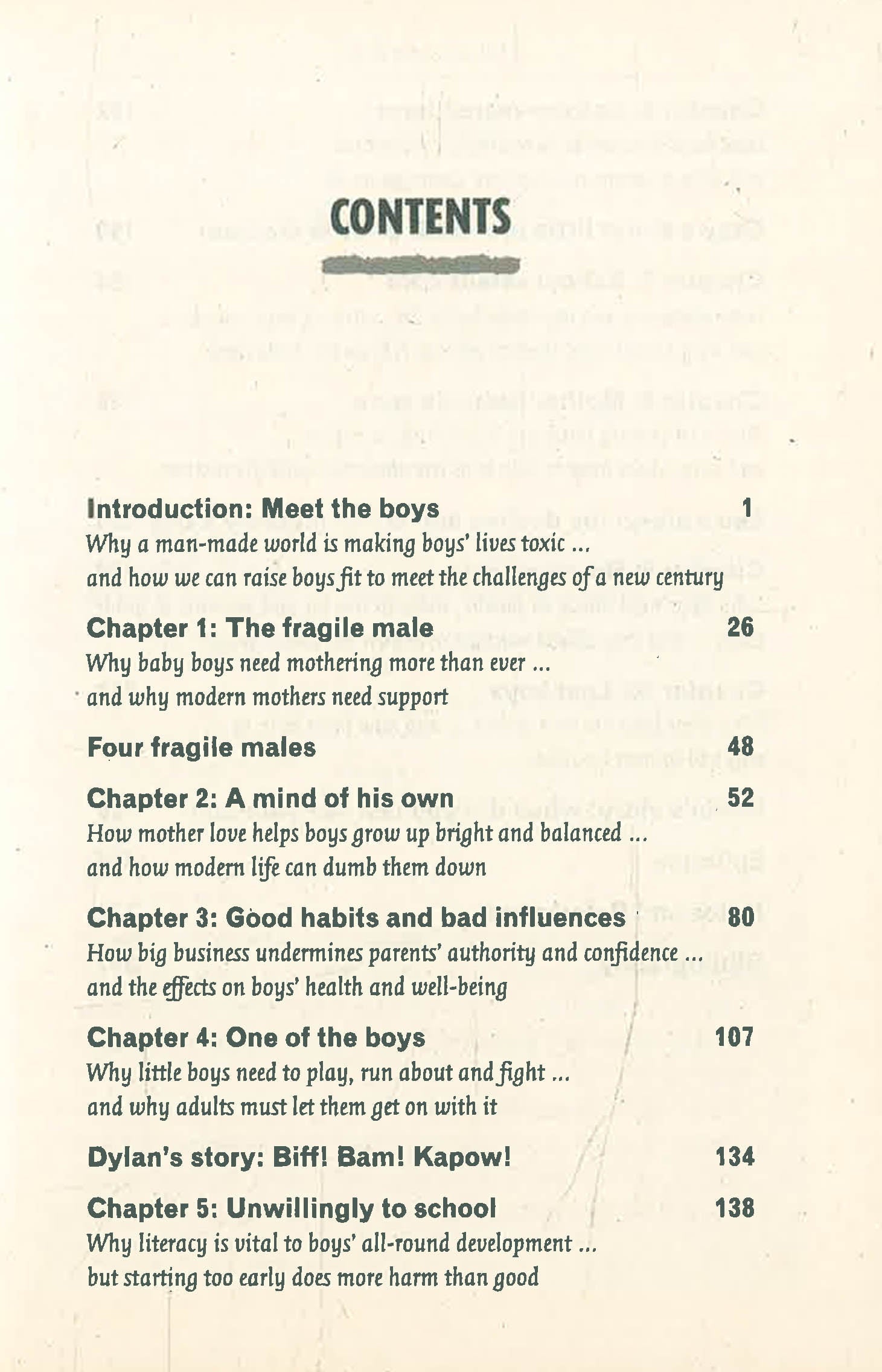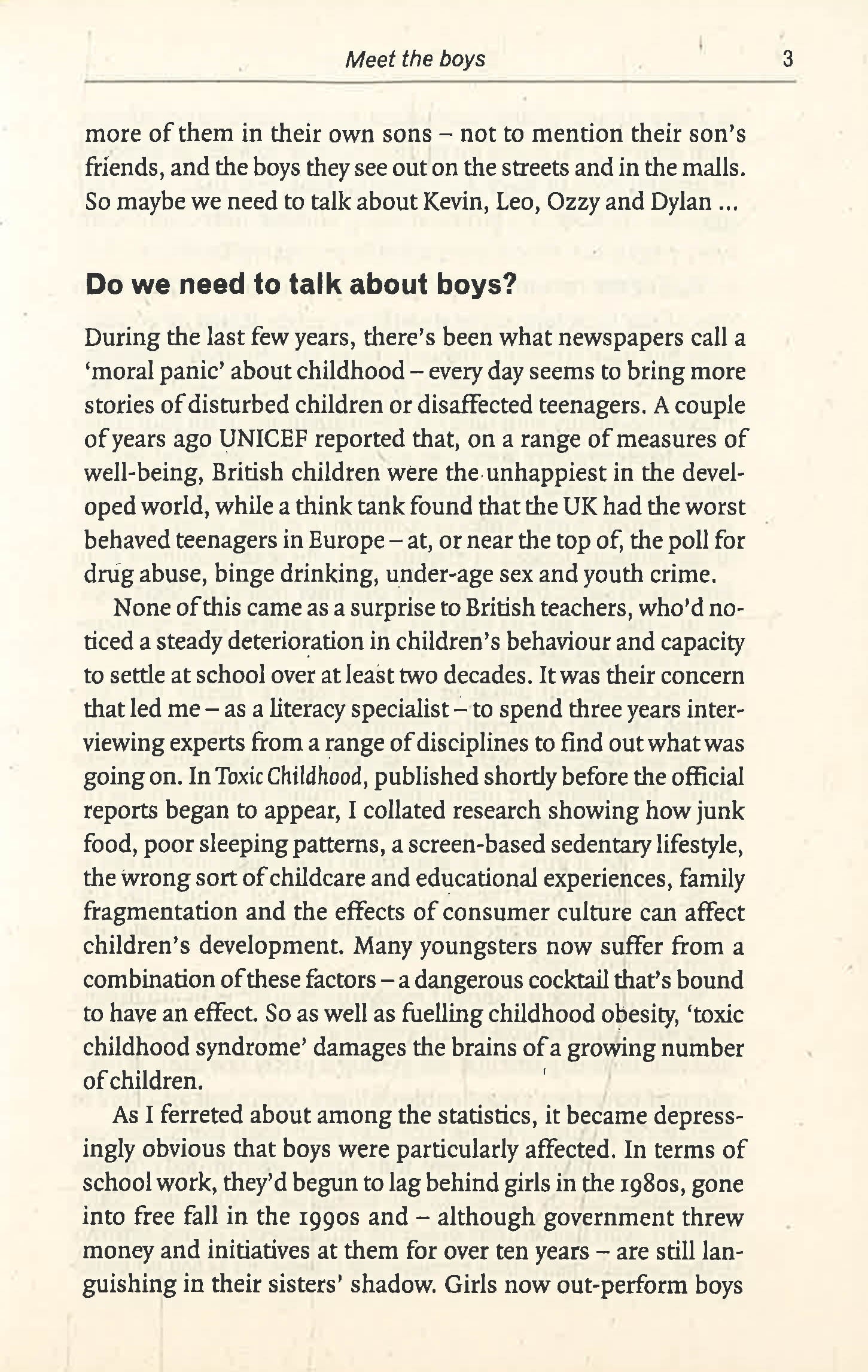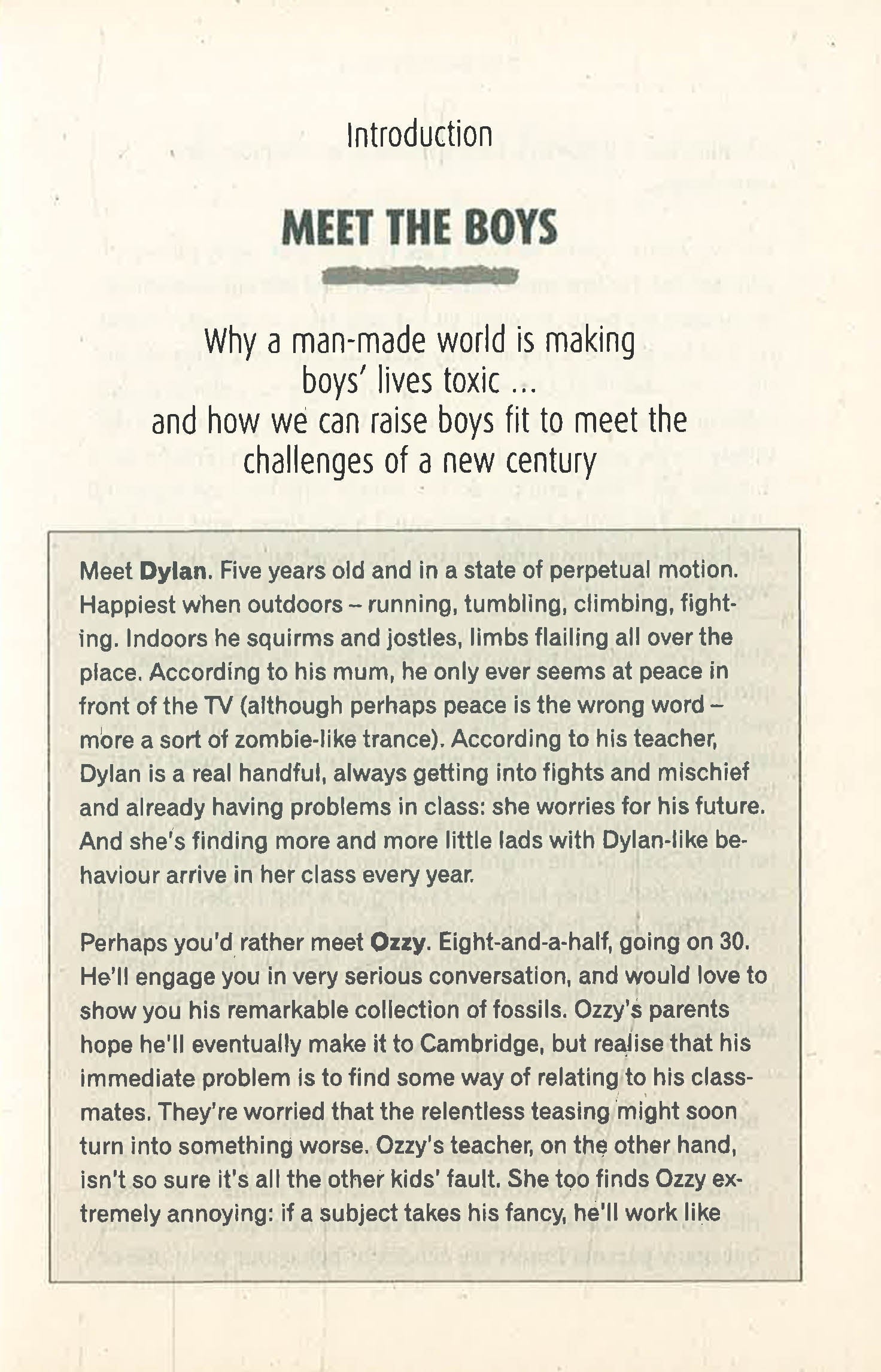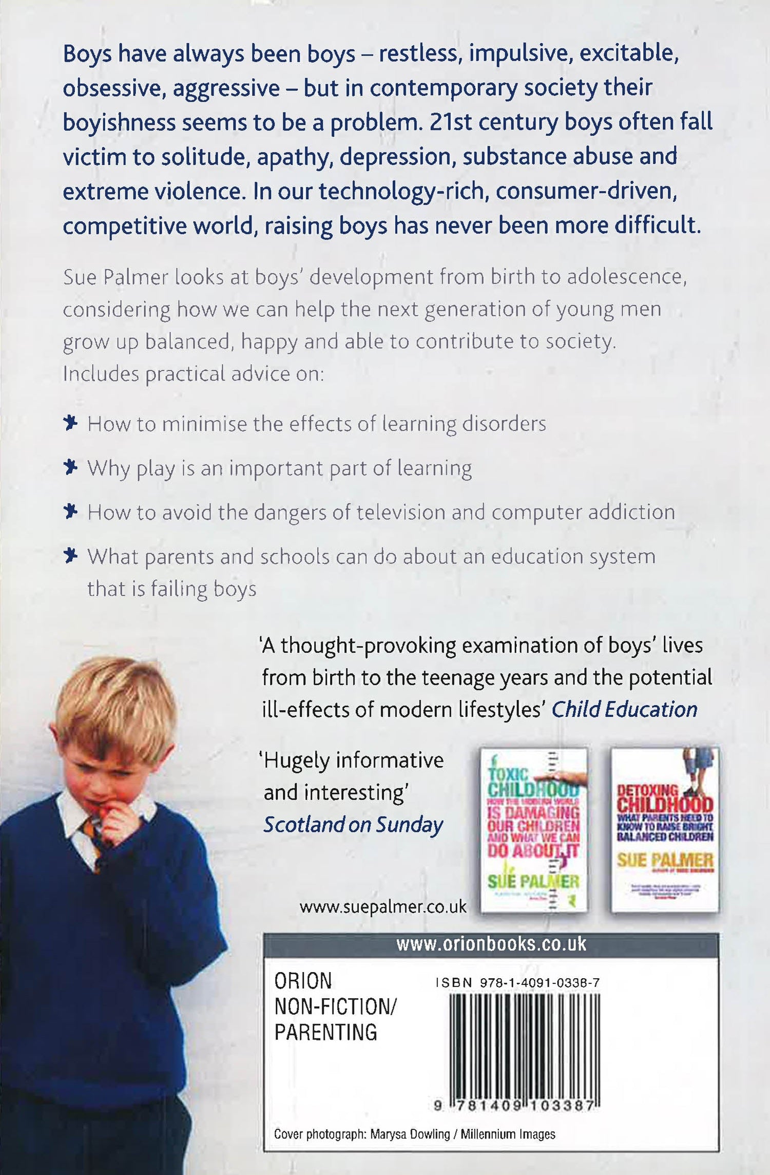 What's happening to boys? At home, they sprawl before a flickering screen, lost in a solitary, sedentary fantasy world; at school, the choice of role seems limited to nerd or thug, bullied or bullying. By the time they reach their teens, the chances of depression, self-harm, drug or alcohol abuse grow each year. Raising boys has never been more difficult. For the sake of their sons, parents need to know the facts about how boys develop and how best to protect them from the damaging effects of modern life. Sue Palmer assesses the issues currently confronting boys from birth to when they leave school, and explains how we can all help to ensure they emerge as healthy, normal adults. Based on the latest research from around the world, 21st CENTURY BOYS provides parents, teachers and others with a clear pathway to bringing up boys.