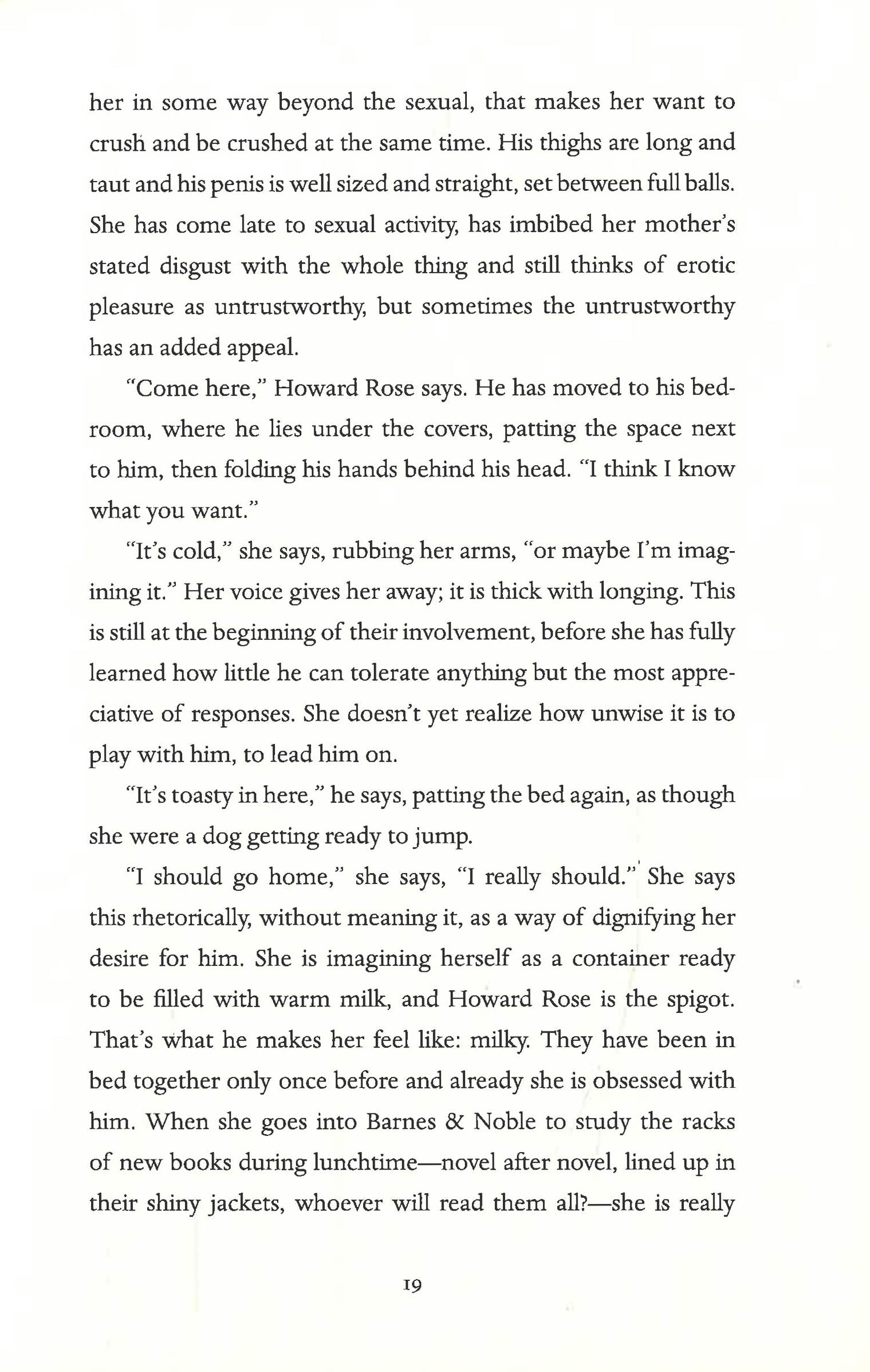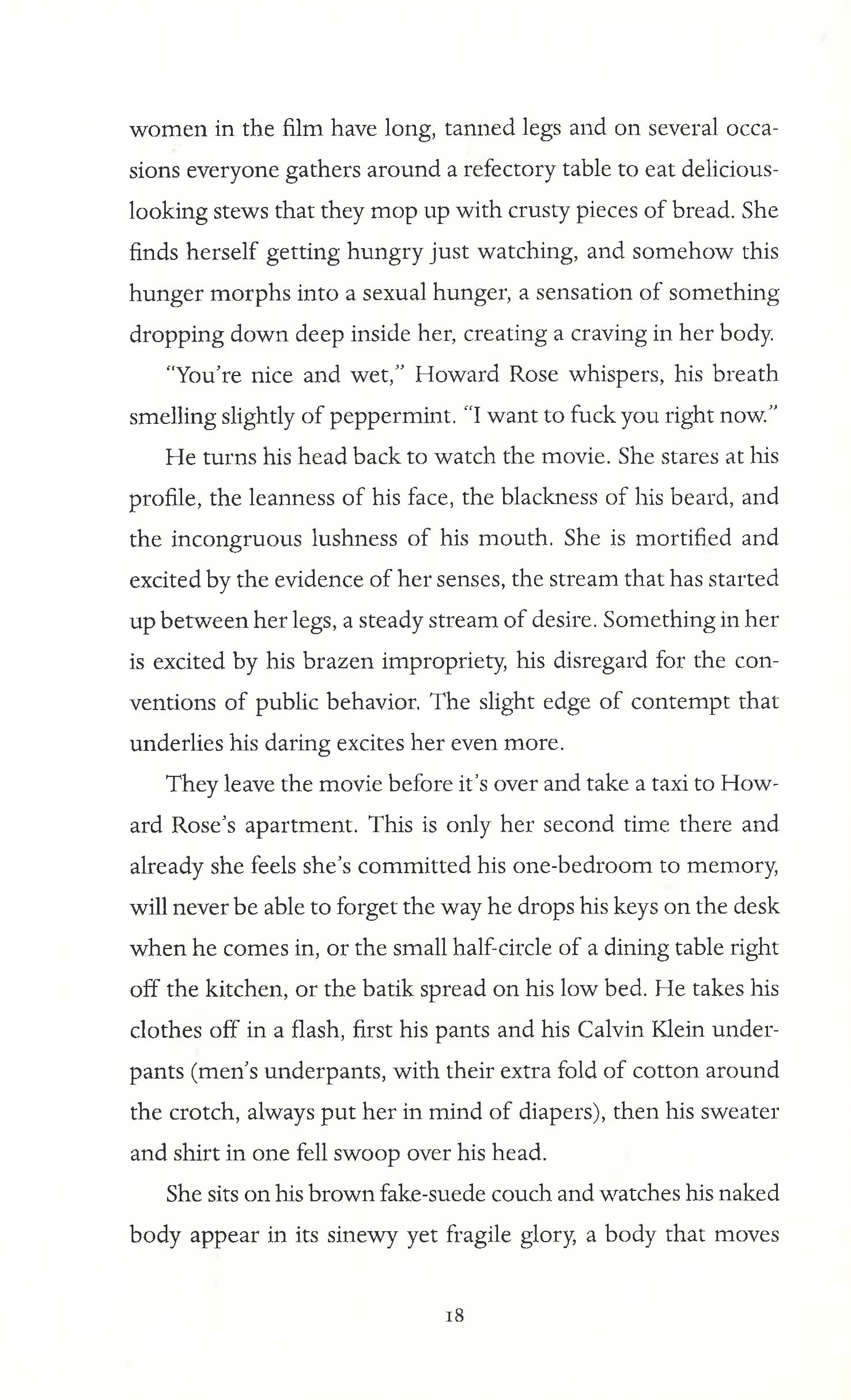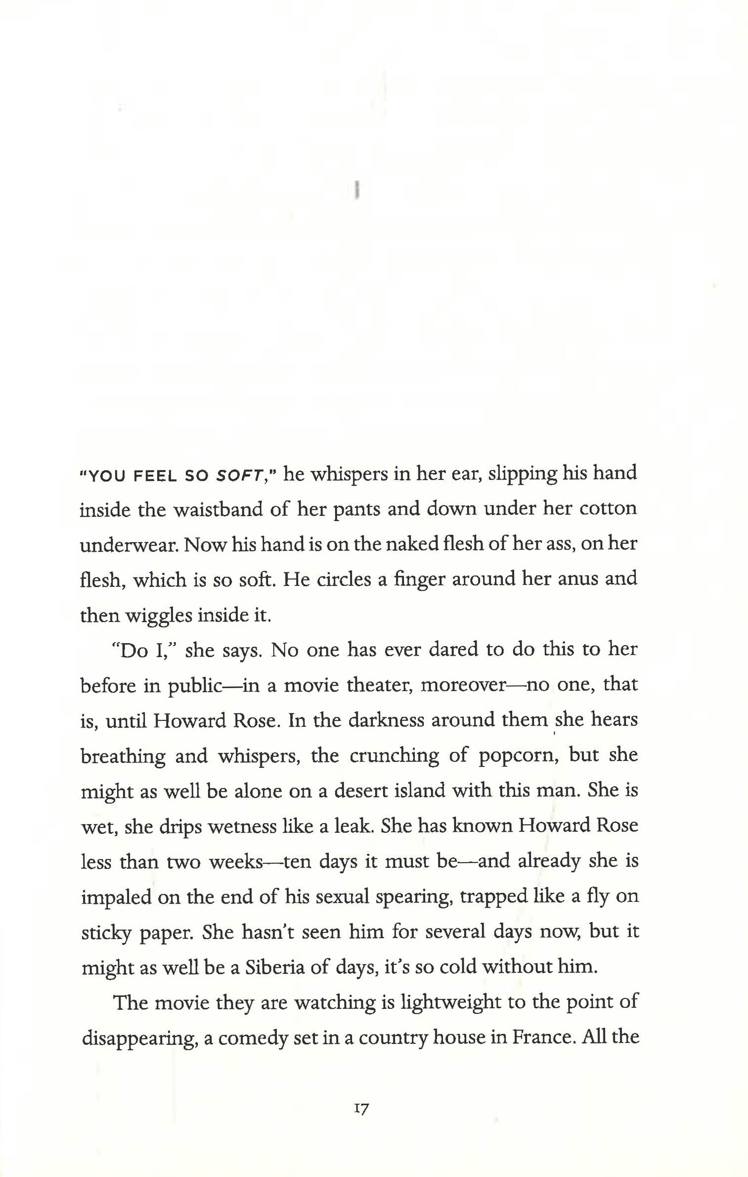 Convinced she’s found the one, Judith Stone succumbs to the push and pull of her sexual entanglement with Howard Rose, constantly seeking his attention and approval. That is, until she realizes that beneath his erotic obsession with her, Howard is intent on obliterating any sense of self she possesses. As Merkin writes, his was “the allure of remoteness, affection edged in ice.” Escaping Howard’s grasp―and her own perverse enjoyment of being under his control―will test the limits of Judith’s capacity to resist the siren call of submission.