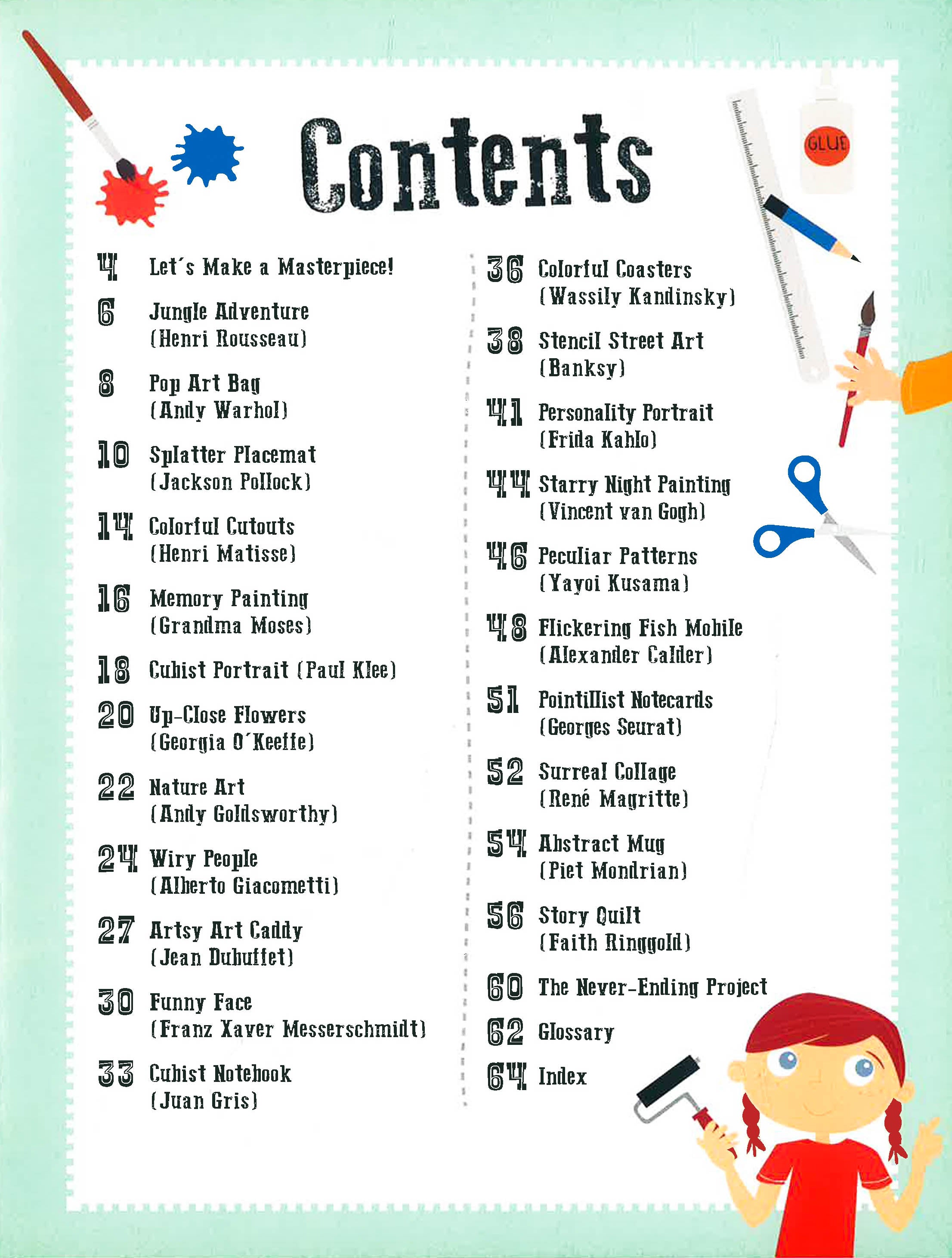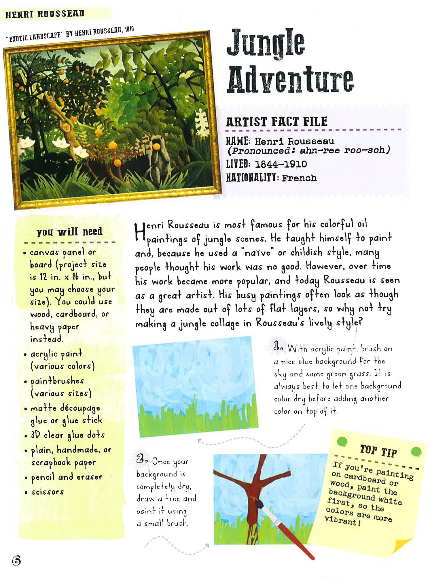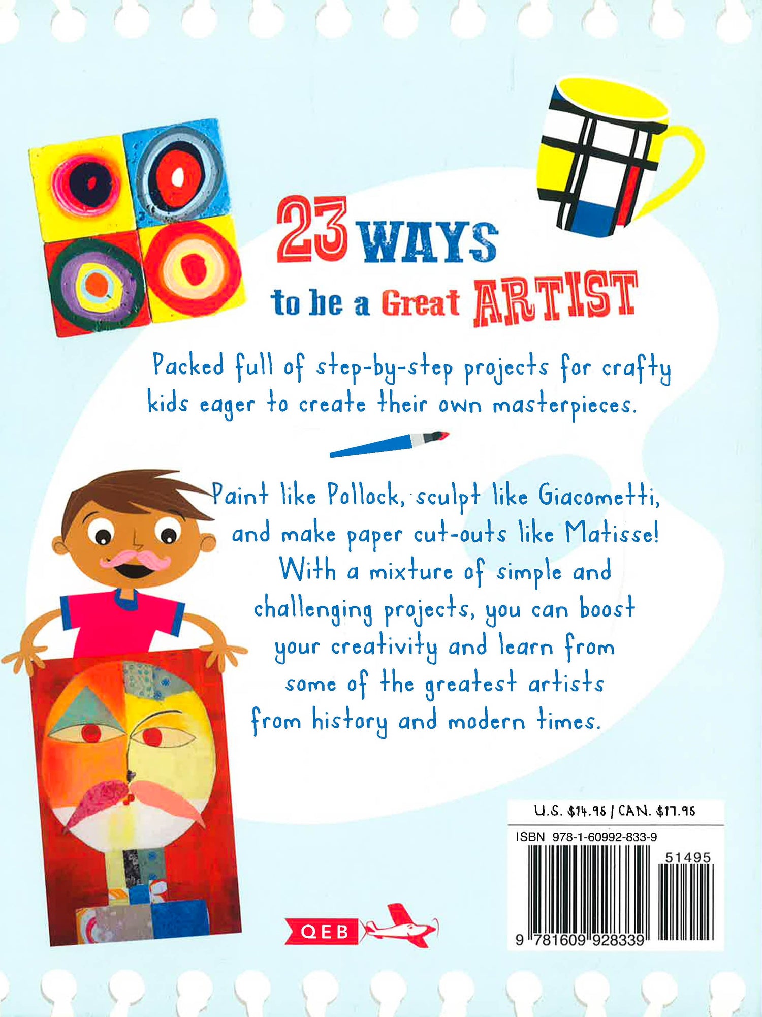The book is packed full of step-by-step projects for crafty kids eager to discover the secrets to creating a masterpiece. Paint like Jackson Pollock, sculpt like Henry Moore, and make paper cut-outs like Matisse! With a mixture of simple and challenging projects, readers can learn how to emulate the greatest artists from history and modern times. The reader will also learn about the artist behind each project and how to adapt the techniques to use on a variety of creative endeavours.