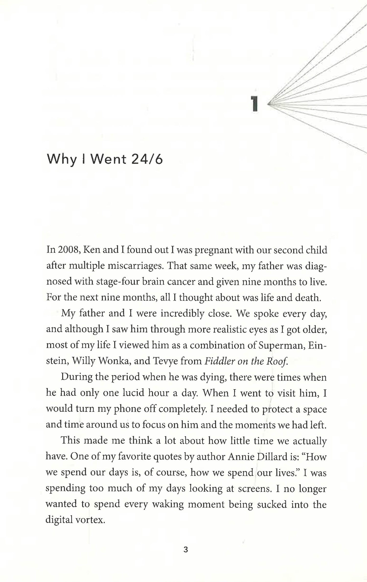 "Bolstered with fascinating and germane facts about neuroscience, philosophy, psychology, and the history of the concept of a day of rest" (Publishers Weekly), 24/6 makes the case for incorporating this weekly reset into our 24/7 lives, issuing a call to rebalance ourselves and our society.
