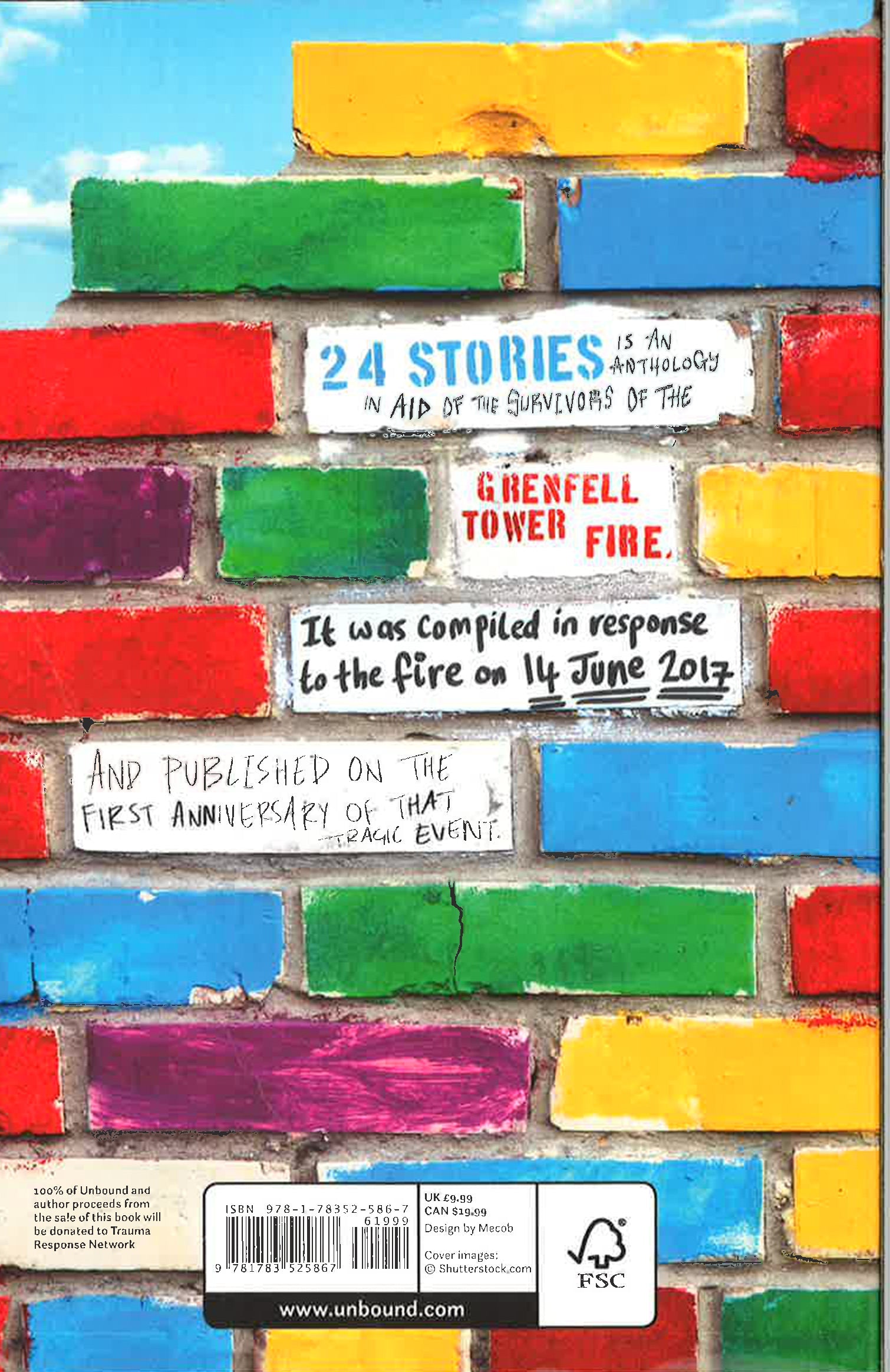 In the early hours of 14 June 2017, a fire engulfed the 24-storey Grenfell Tower in west London, killing at least 72 people and injuring many more.In the early hours of 14 June 2017, a fire engulfed the 24-storey Grenfell Tower in west London, killing at least 72 people and injuring many more. An entire community was destroyed. For many people affected by this tragedy, the psychological scars may never heal. Post-Traumatic Stress Disorder is a condition that affects many people who have endured traumatic events, leaving them unable to move on from life-changing tragedies. In the immediate aftermath of the fire, the focus was rightly placed on providing food, shelter and health care for those left homeless - but it is important that we don't lose sight of the psychological impact this fire will have had on its survivors. 24 Stories is an anthology of short stories, written on themes of community and hope, by a mix of the UK's best established writers and previously unpublished authors, whose pieces were chosen by Kathy Burke from over 250 entries. Contributors include: Irvine Welsh, A. L. Kennedy, Meera Syal, John Niven, Pauline Melville, Daisy Buchanan, Christopher Brookmyre, Zoe Venditozzi, Nina Stibbe, Mike Gayle, Murray Lachlan Young, Barney Farmer.