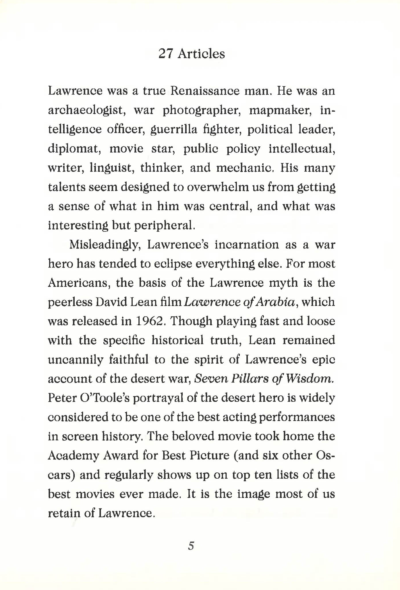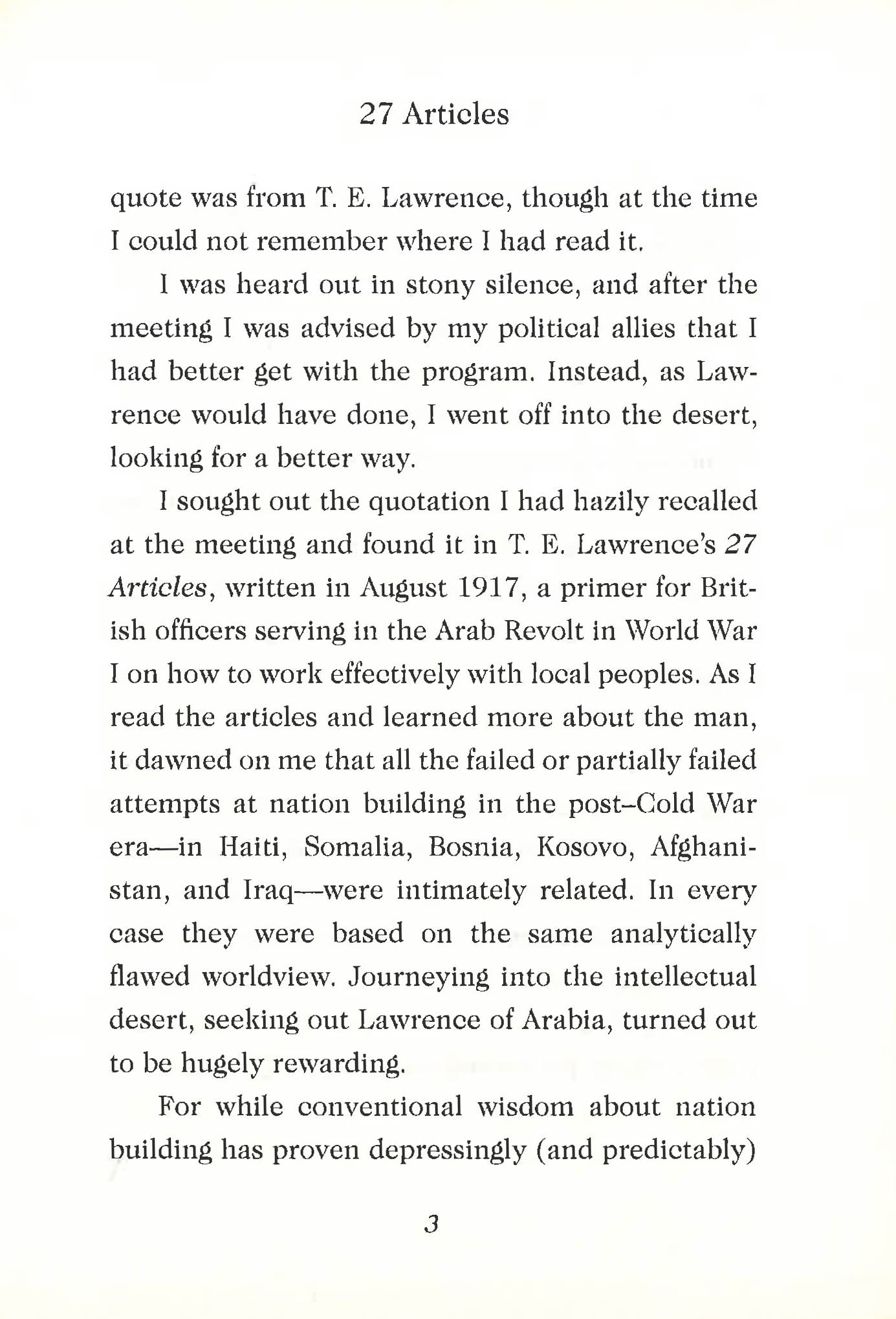 27 Articles is Lawrence of Arabia’s classic set of guidelines on military leadership in the Middle East. The 100th anniversary edition features a new introduction by foreign policy expert John Hulsman and a new afterword from CBS News President David Rhodes, addressing the articles’ lasting lessons.