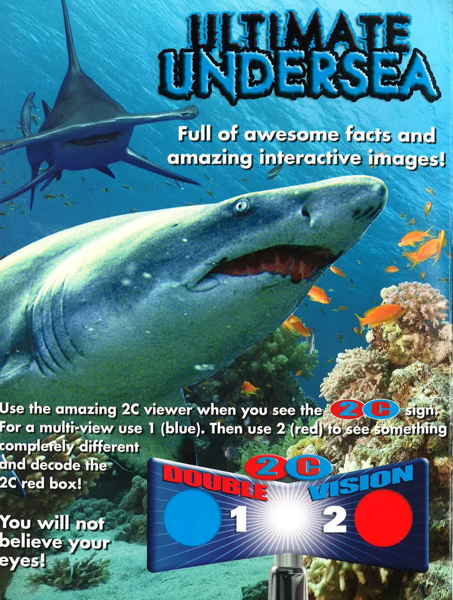 Welcome to the interactive world of 20 - an amazing Double Vision experience. Packed with awesome undersea creatures. Hunt them out with the double-clever 2C viewer. You will not believe your eyes! Use the special 20 viewer to get Double Vision: twice the pictures, twice the fun!