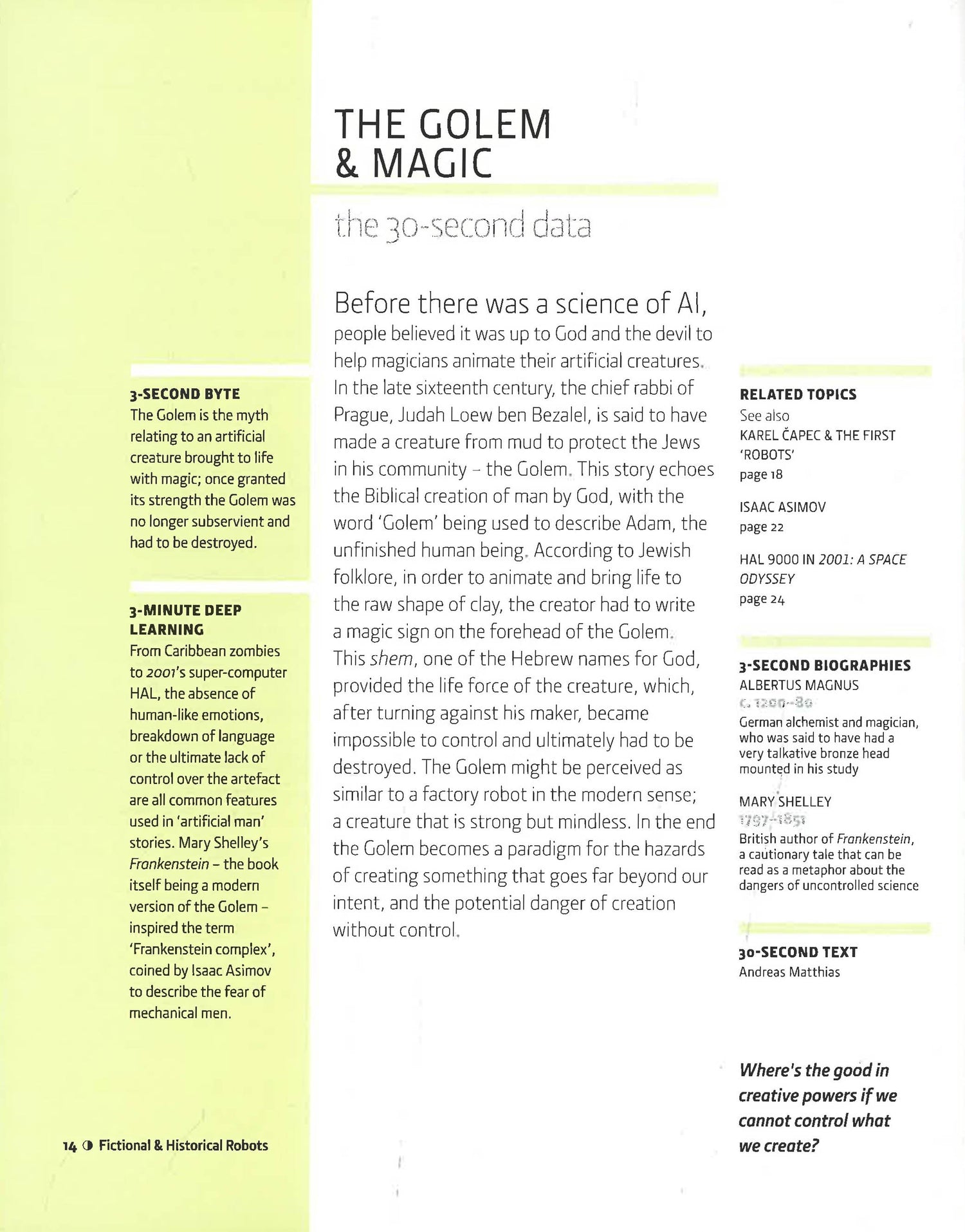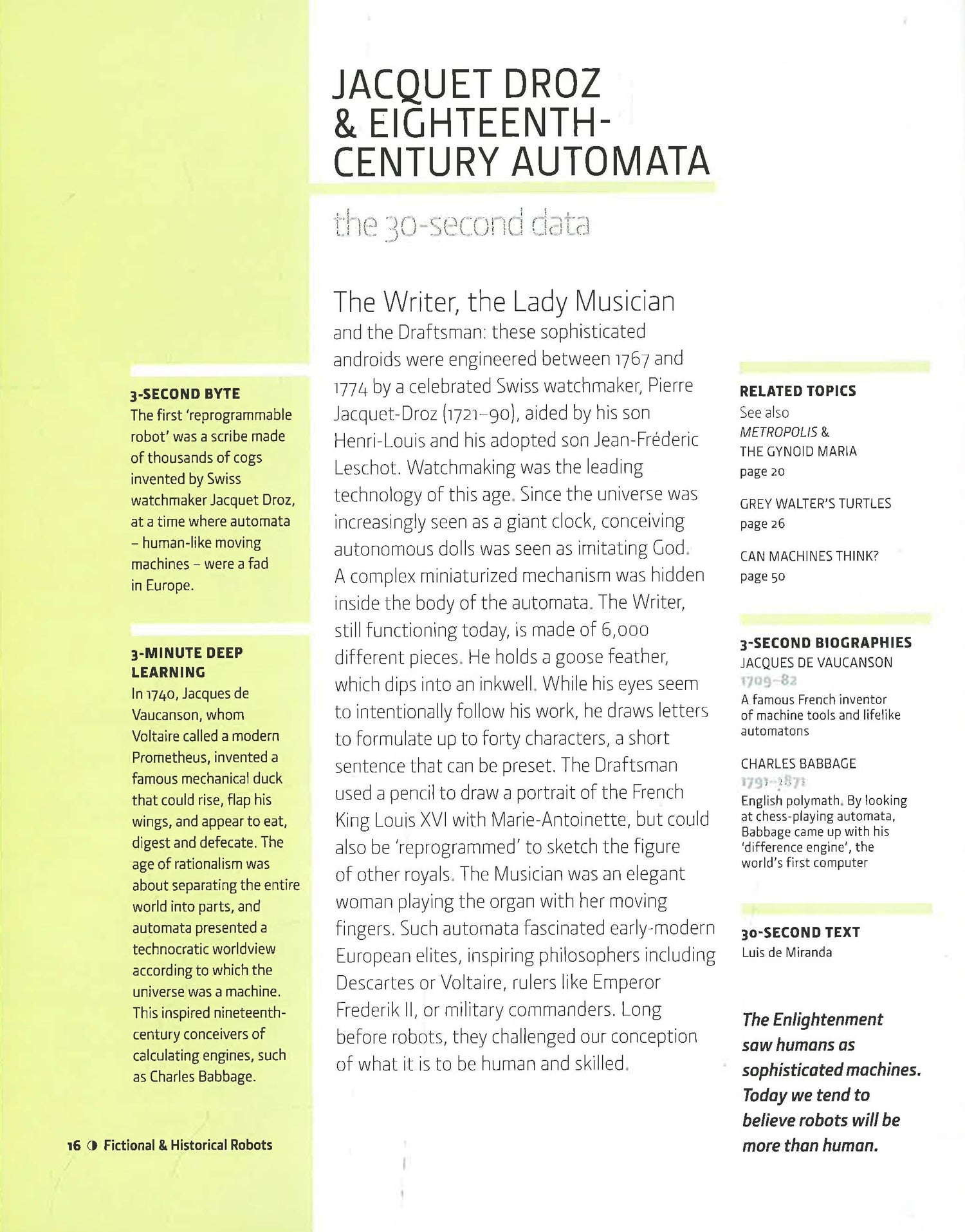 This comprehensive presentation of the core concepts and historical landmarks in robotics and artificial intelligence is a must-read for those who want to understand the important changes happening now in our everyday lives, in the workplace, and in our minds and bodies. What is deep in "deep learning"? Can artificial intelligence really think? What will robots really look like in the near future? Is there a new class divide between those who understand technology and those who fear it? A clear and exhaustive introduction for non-specialists, 30-Second AI & Robotics will help the reader to navigate the world of ubiquitous computers, smart cities, and collaborative robots. At last, an optimistic and friendly book about our human possibilities in the time of automata.