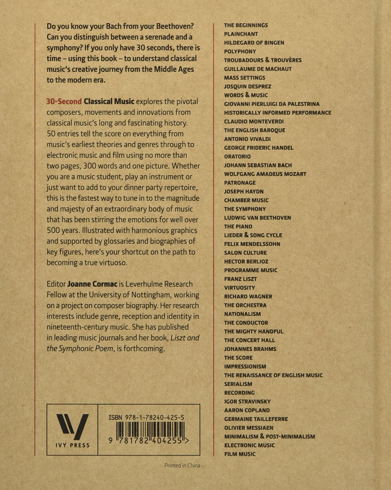 Do you know a capella from zarzuela, or your major from your minor? Can you distinguish between a serenade and a symphony? If you only have 30 seconds, there is time – using this book – to understand the creative journey taken by classical music from the Middle Ages to the modern era. Our early ancestors understood pitch and rhythm, the basic tools that have been worked and ordered by composers and performers over the past 400 years into an extraordinary body of music written for soloists, chamber musicians and entire orchestras. Today, everyone has access to a prodigy of classical music which, far from being traditional or elitist, is alive and magical. From plainsong to programme music, appreciate the magnitude and majesty, the passion and the pathos of sounds that have the power to stir our emotions to great joy or infinite sadness. Here’s music to your ears.