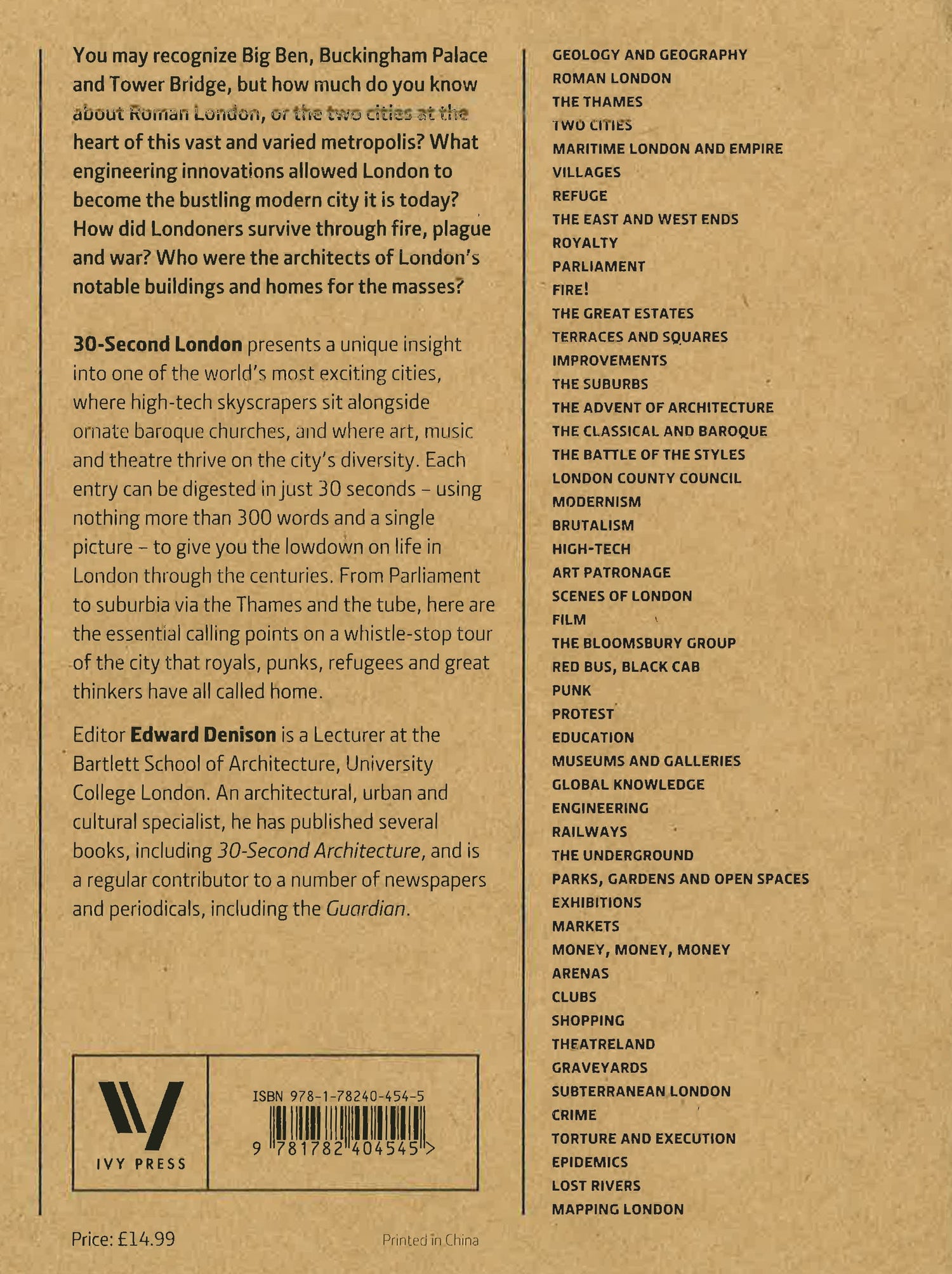 If you are tired of London, are you really tired of life? 30-Second London agrees with Dr. Johnson's famous statement, taking the history of one of the most diverse cities on Earth and looking at the forces that shaped it, from the first traces of a Neanderthal settlement on the banks of the River Thames to today's vast and varied metropolis. Along the way, readers will discover underground London, secret London, suburban London, and much more, on a revealing whistlestop city tour.