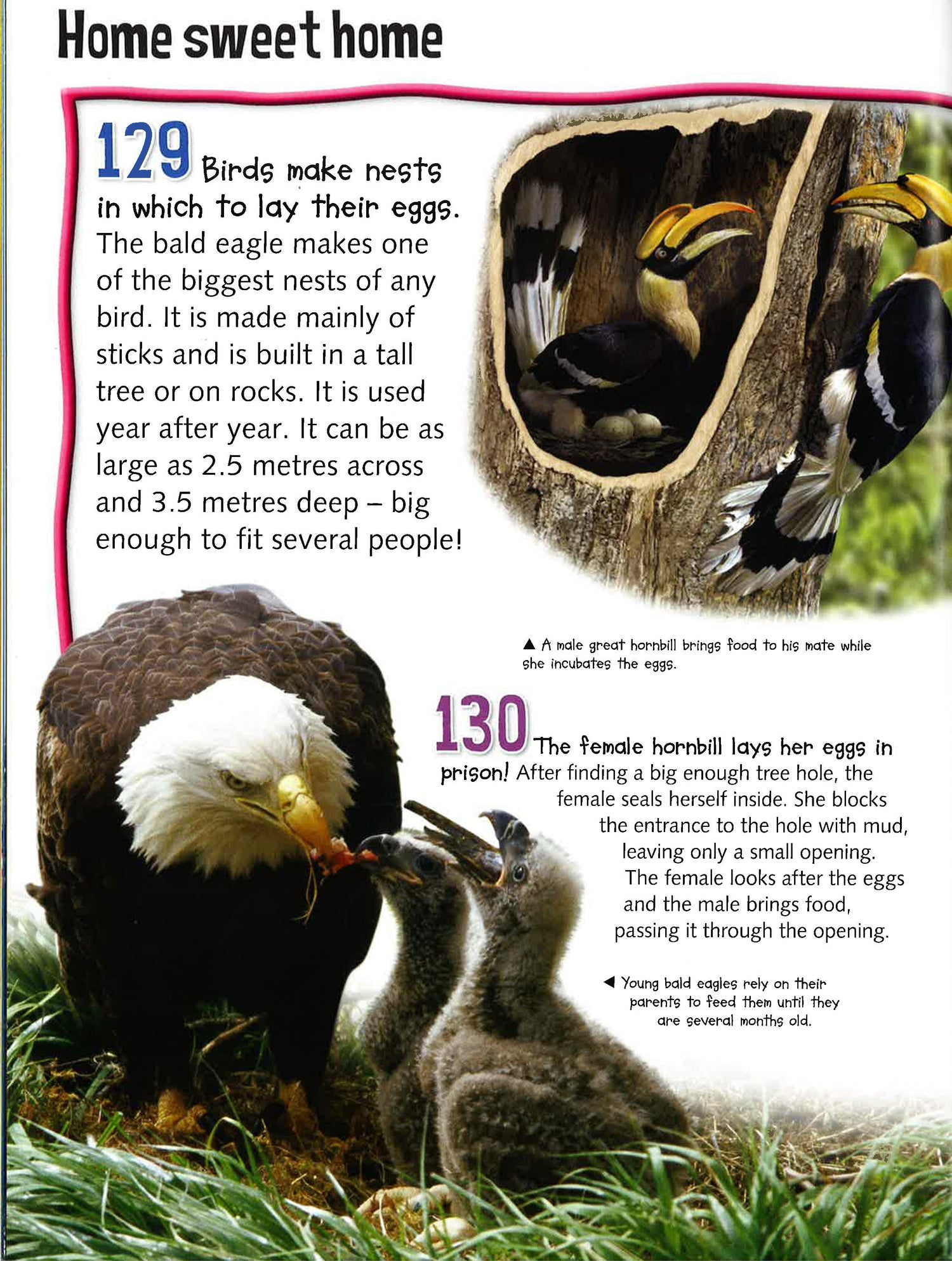Throughout 300 Fantastic Facts Animals, there are activity panels and quiz questions for kids to test their new knowledge and to challenge them to remember all the amazing facts they have read so far. 300 Fantastic Facts Animals is a complete guide to the animal kingdom for children. Some fantastic facts that can be found inside include: The tiny mouse deer is only the size of a hare. Also known as the chevrotain, this little creature is only about 85 centimetres long and stands about 30 centimetres high at the shoulder. There are more than 950 different types of bat. They live in most parts of the world, but not in colder areas. Most whales are born tail first. If the baby emerged head first it could drown during the birth process.