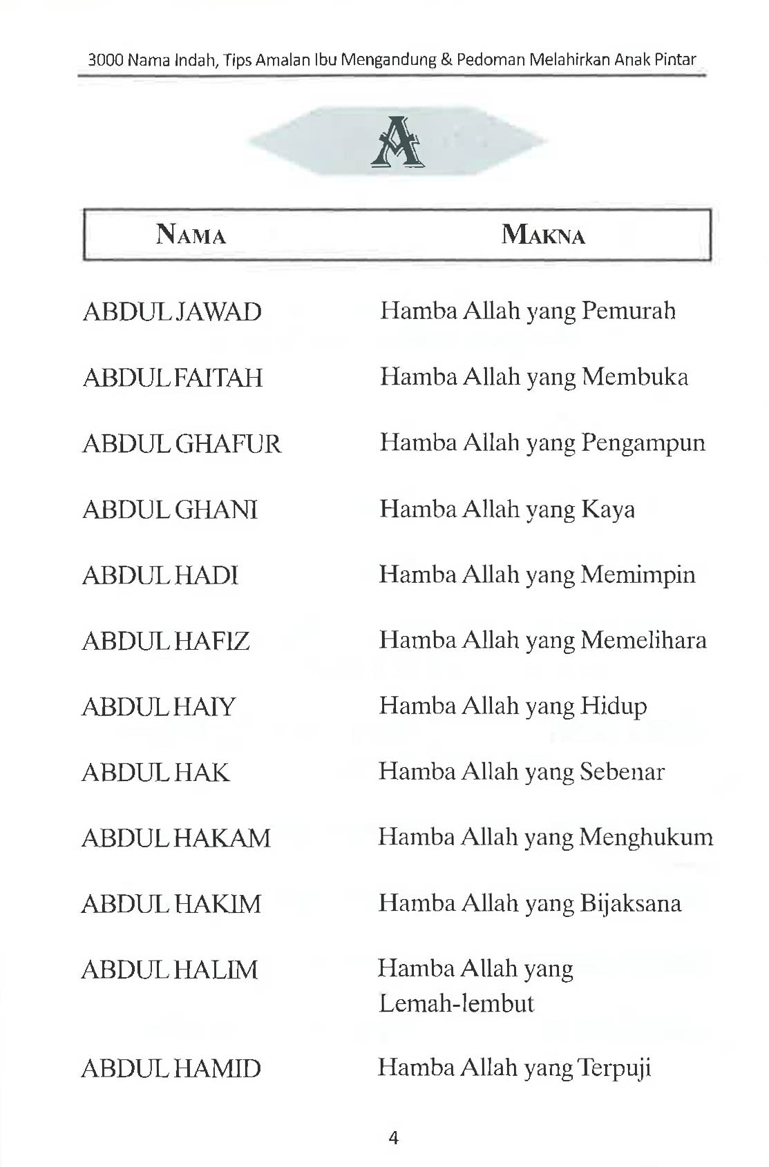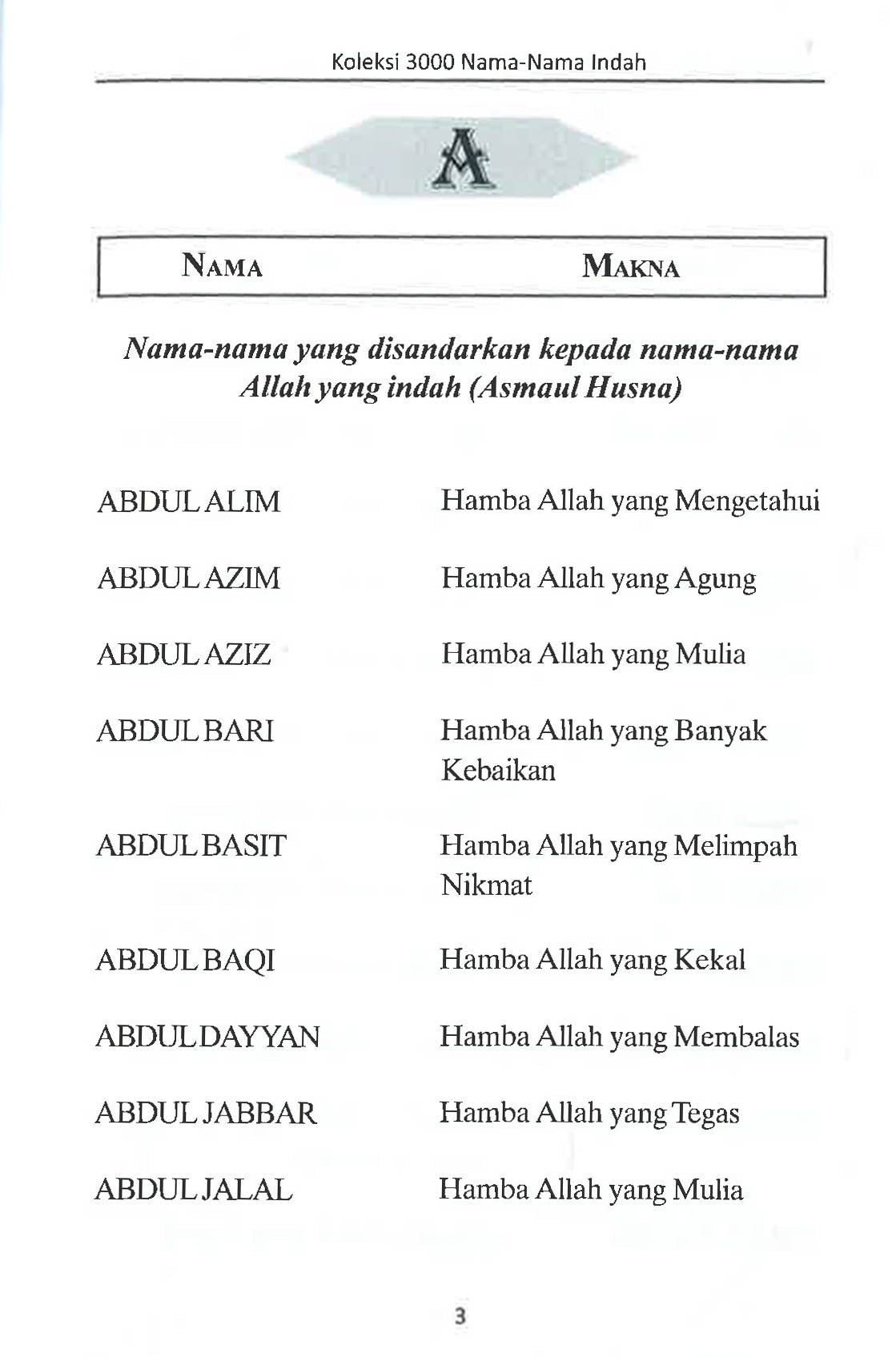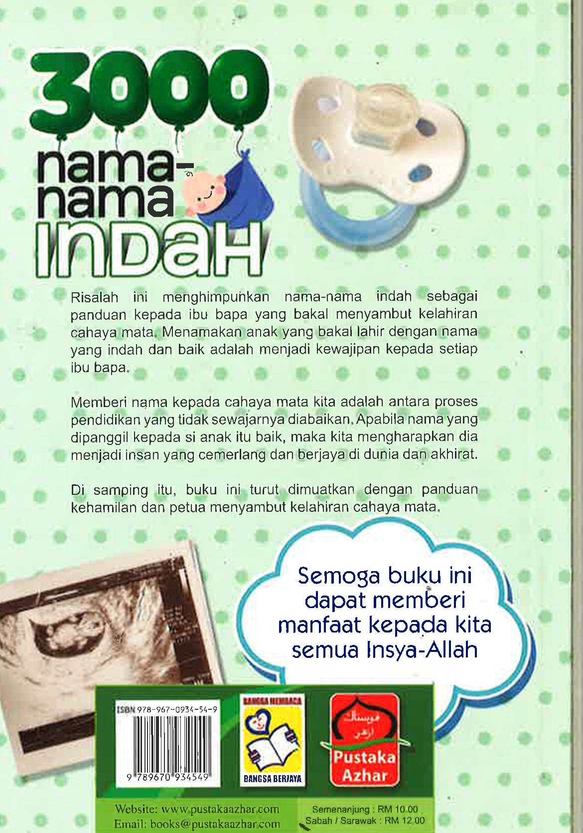 Risalah ini menghimpunkan nama-nama indah sebagai panduan kepada ibu bapa yang bakal menyambut kelahiran cahaya mata. Menamakan anak yang bakal lahir dengan nama yang indah dan baik adalah menjadi kewahipan kepada setiap ibu bapa