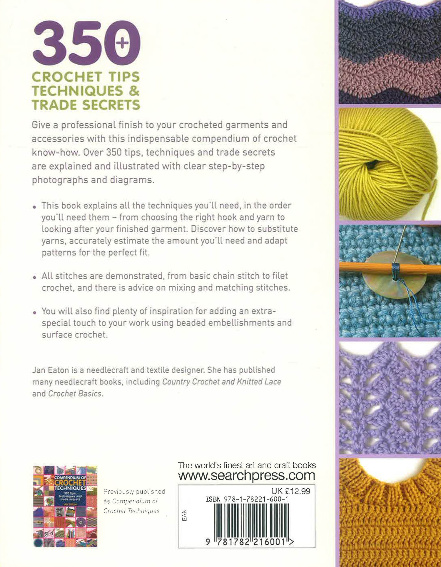 Give a stylish finish to your crocheted garments and accessories with this must-have compendium of crochet know-how. This updated edition of the hugely successful 'Compendium of Crochet Techniques' now contains over 350 tips, techniques and trade secrets, all clearly explained with step-by-step instructions, photographs and diagrams. Discover how to substitute yarns, accurately estimate the amount you need and adapt patterns for the perfect fit. All stitches are clearly demonstrated, from basic chain stitch to filet crochet, and there is advice on mixing and matching stitch patterns. All the techniques you need are explained, in the order you need them, from choosing the right hook and yarn to looking after your finished garment. 'Try it' and 'fix it' panels suggest ways of practising and developing new skills and avoiding or correcting common knitting errors. This is the essential go-to crochet guide that you will turn to again and again.