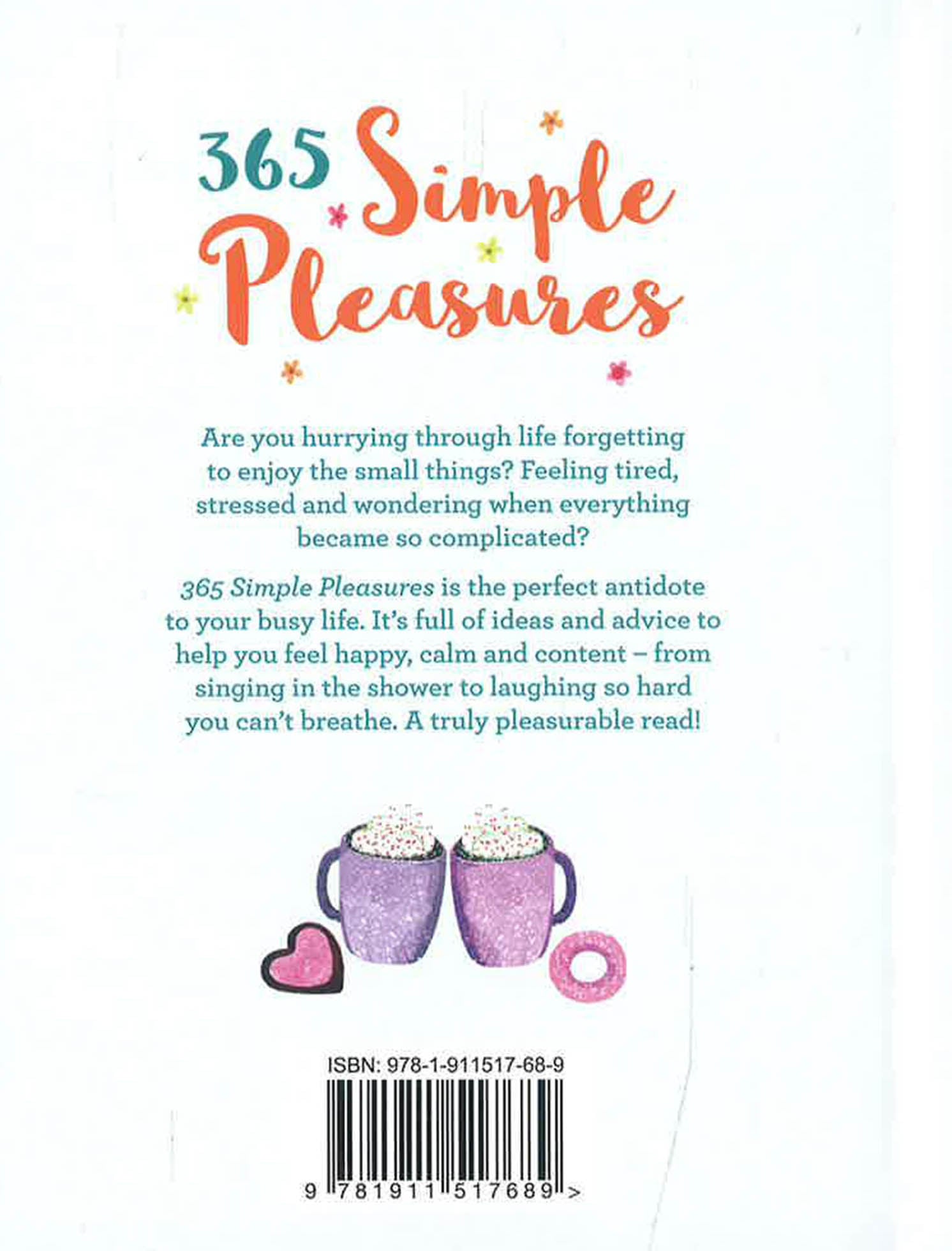 365 Simple Pleasures is the perfect antidote to your busy life. It's full of ideas and advice to help you feel happy, calm and content - from singing in the shower to laughing so hard you can't breathes. A truly pleasurable read!