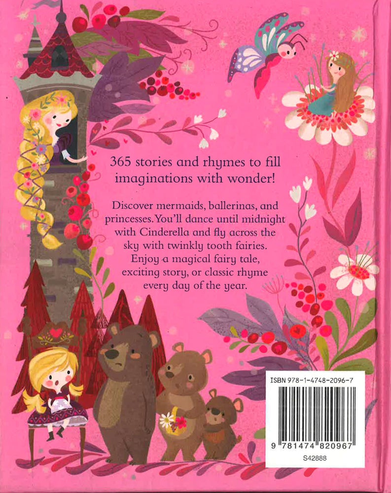 Enjoy a new story or rhyme every day of the year with 365 Stories and Rhymes. Discover mermaids, ballerinas, and princesses. You'll dance until midnight with Cinderella and fly across the sky with twinkly tooth fairies. Enjoy a magical fairy tale, exciting story, or classic rhyme every day of the year with this beautiful treasury. This edition comes with beautiful silver gilded edges and a ribbon marker.