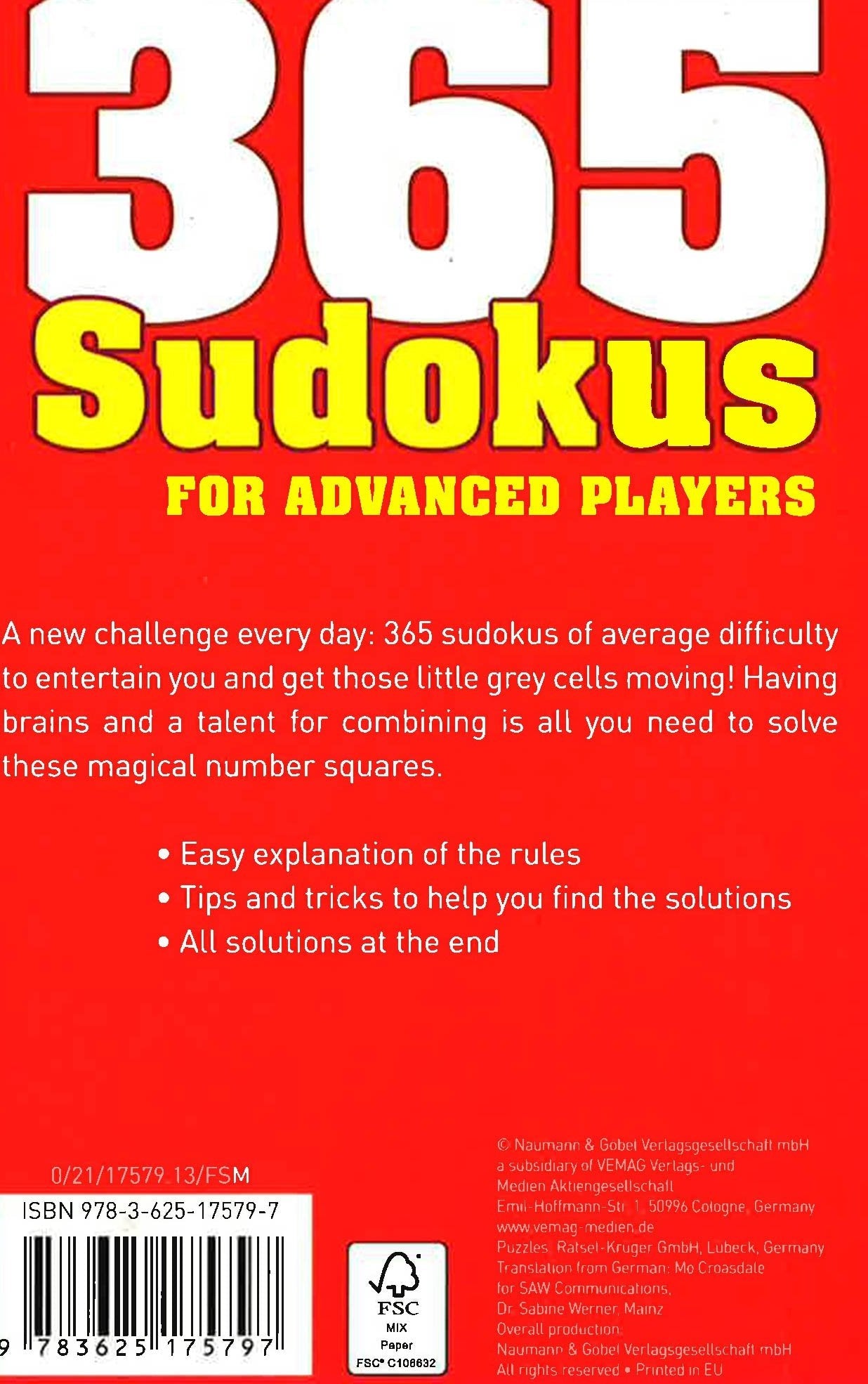 A new challenge every day: 365 sudokus of average difficulty to entertain you and get those little grey cells moving! Having brains and a talent for combining is all you need to solve these magical numbers squares.