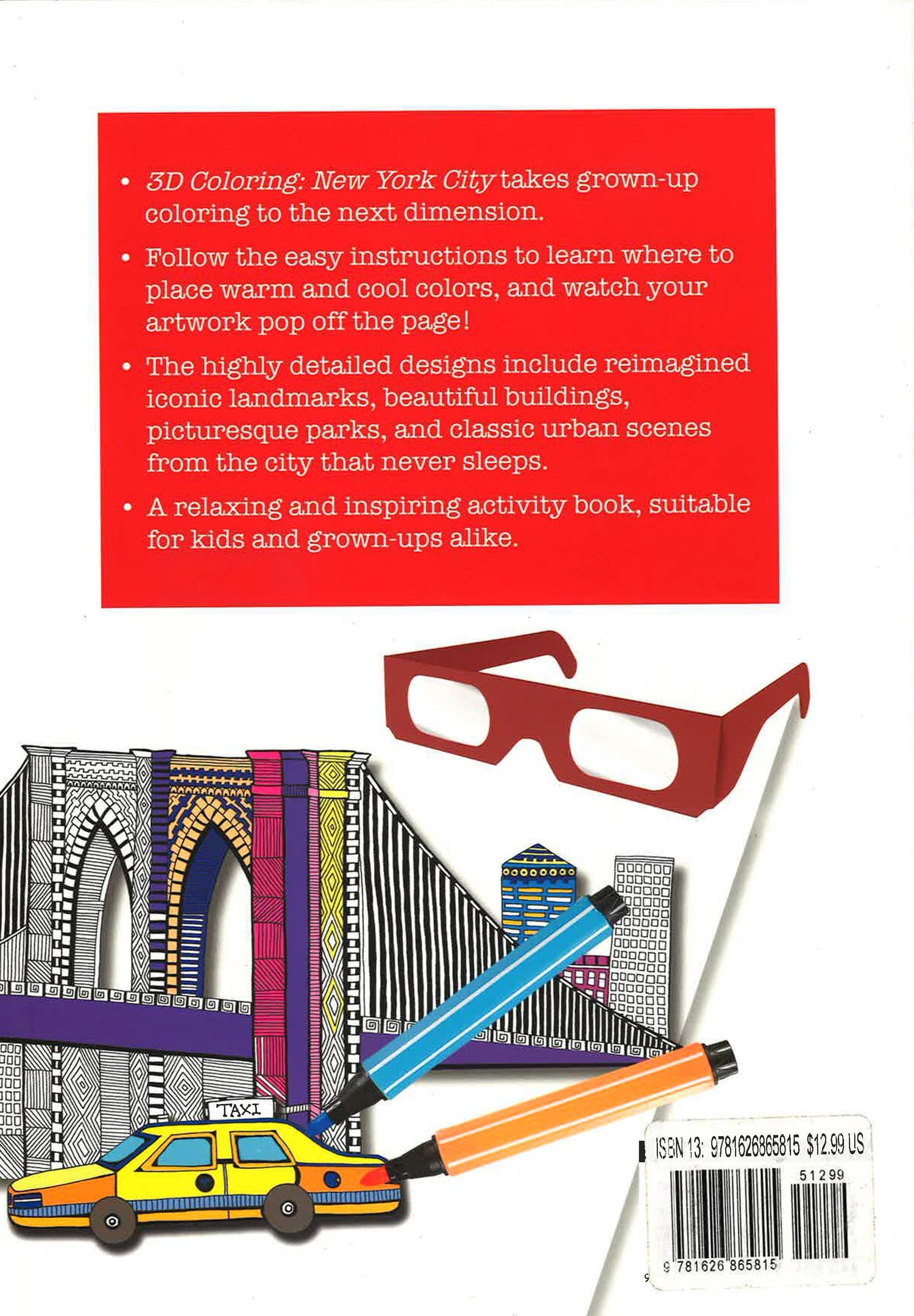 Start spreading the news--New York is in 3-D! The Big Apple takes on a new dimension in this coloring book that includes special 3-D glasses. The Empire State Building, Statue of Liberty, and other images of famous buildings, bridges, and landmarks await your creative, innovative ideas. Coloring can be a relaxing activity that helps to relieve the stress and pressures of daily life. It can also help to increase focus and mental acuity, so get out your markers and explore New York in 3-D color!
