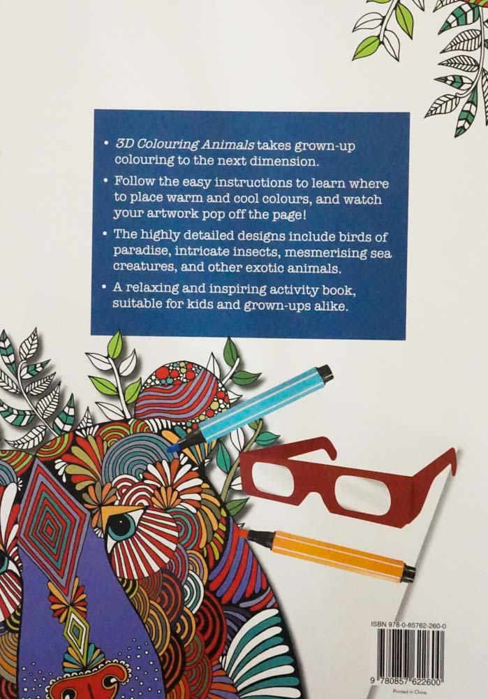 Enter a new dimension in coloring books with 3D Coloring Animals. Inspire your inner adventurer with anaglyphic illustrations by award-winning artist Hannah Davies, or create your own 3D pictures. Enjoy hours of entertainment for young and old alike and also enjoy the 3D glasses included!