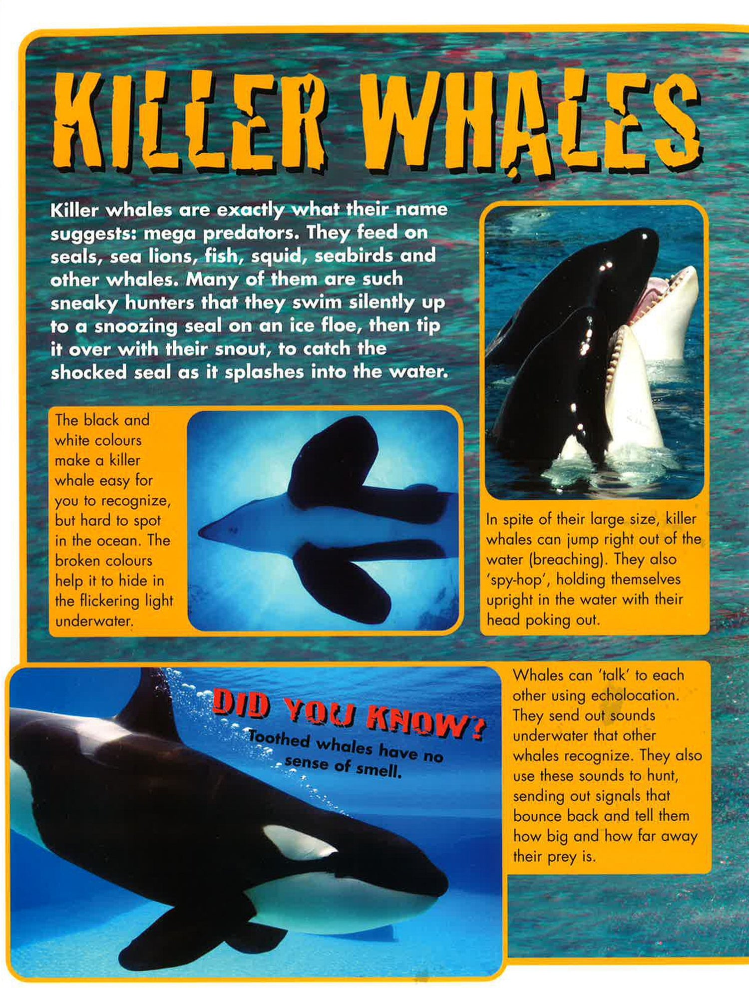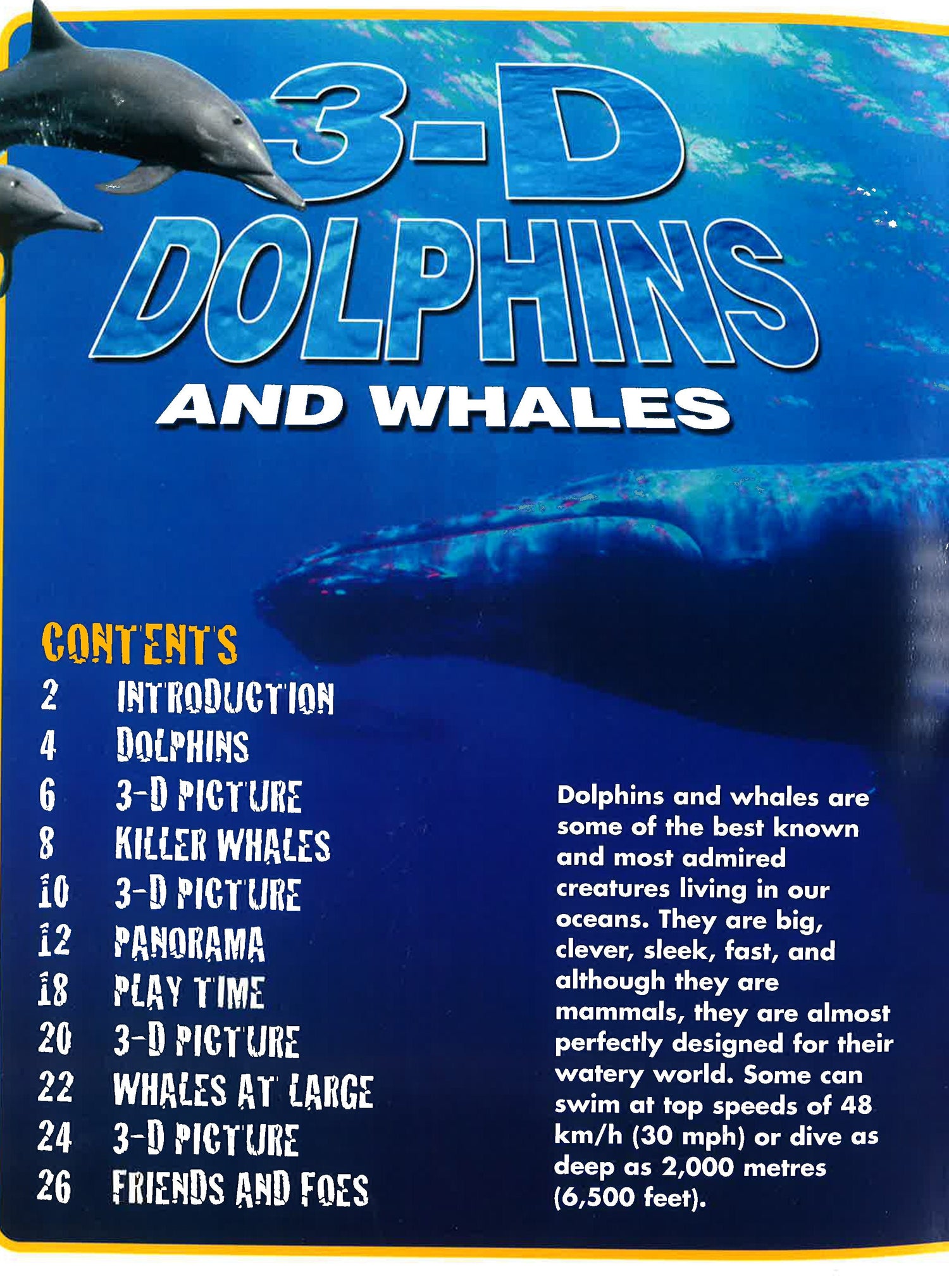 Facts, stats, and awesome ocean creatures in fantastic eye-popping 3D! Take a 3D look at surviving tribes of the ocean: wild dolphins and Killer Whales. Little-known aspects of these creatures capable of sophisticated communication and social interaction. De[icts the life of these graceful, majestic yet near-endangered sea creatures. See what new fact you may learn.
