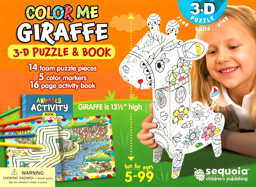 Use your coloring and building skills to decorate and play with this 3D giraffe. Bring your imagination to life! Included is an awesome activity book filled with doodles, mazes, and more to keep your brain gears moving!