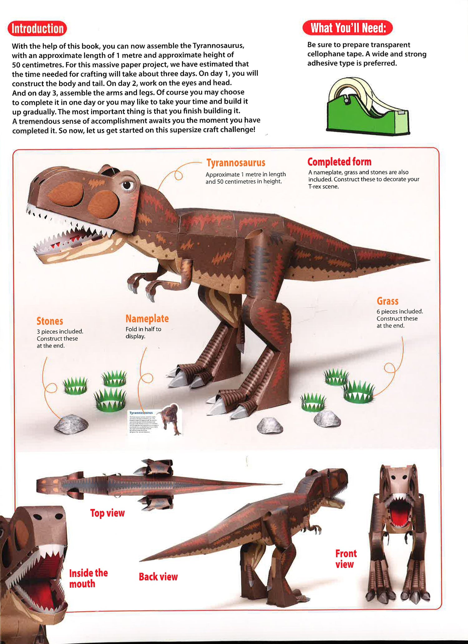 Get into more prehistoric action with a super-size Tyrannosaurus! Parents have to work together with their child to complete this giant craft challenge that features the most ferocious dinosaur from prehistoric times. From the head to the tip of the tail, everything requires close teamwork and delicate attention to put together. A paper craft project that encourages deeper parent-child bonding, it also allows children to further explore their creativity!