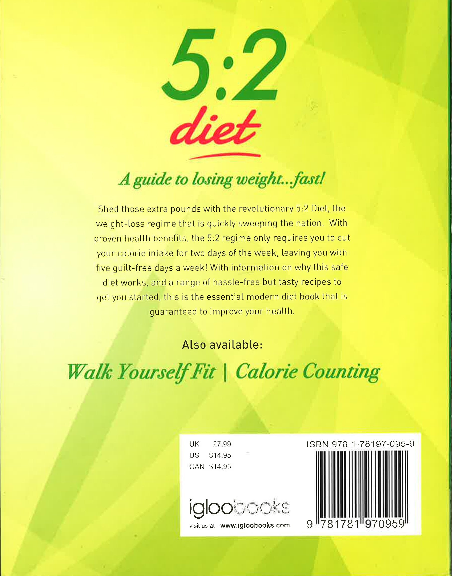 Shed those extra pounds with the revolutionary 5:2 Diet, the weight loss regime that is quickly sweeping the nation. With proven health benefits, the 5:2 regime only require you to cut the calorie intake for two days of the week, leaving you with five guilt free days a week!