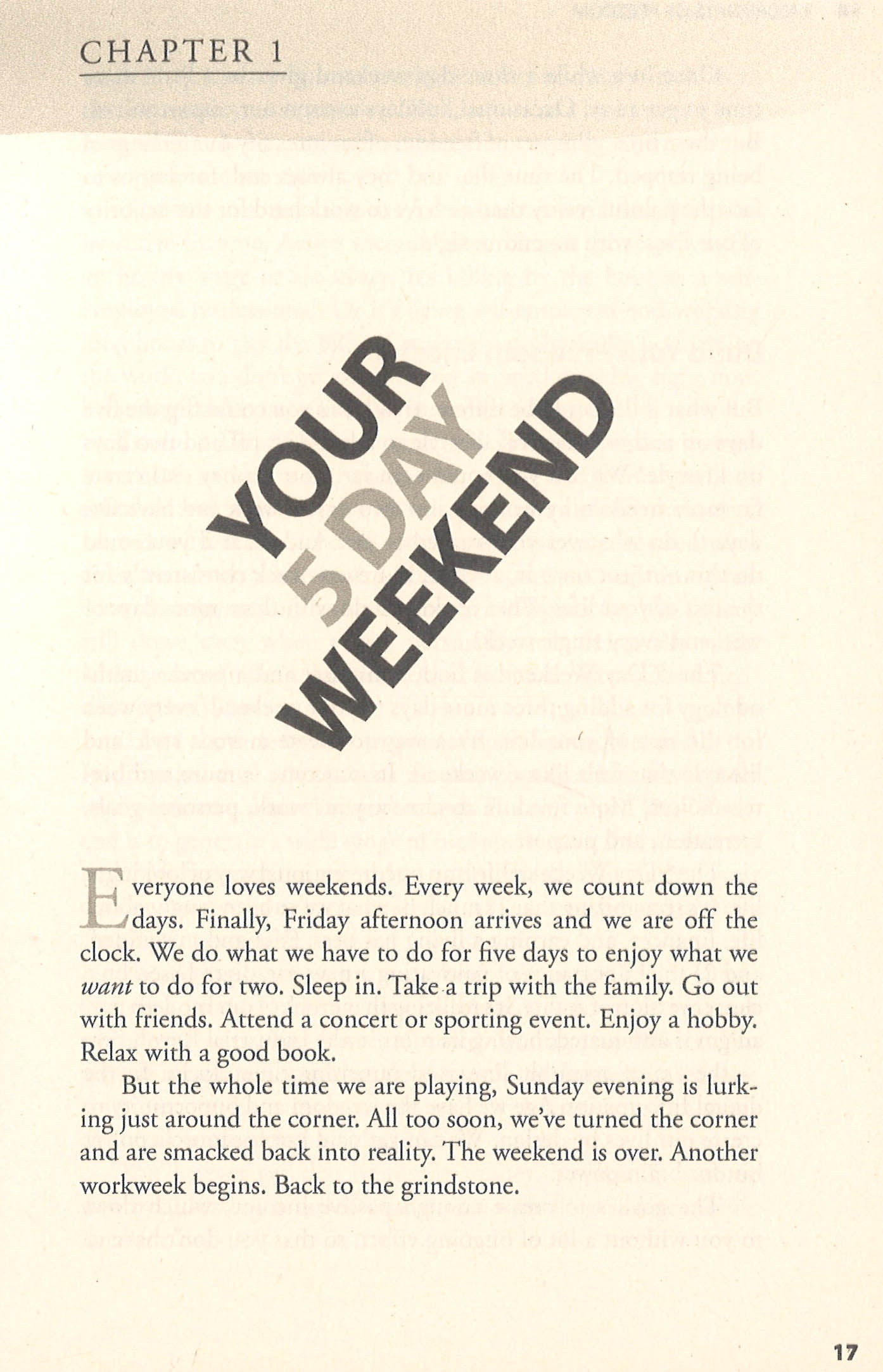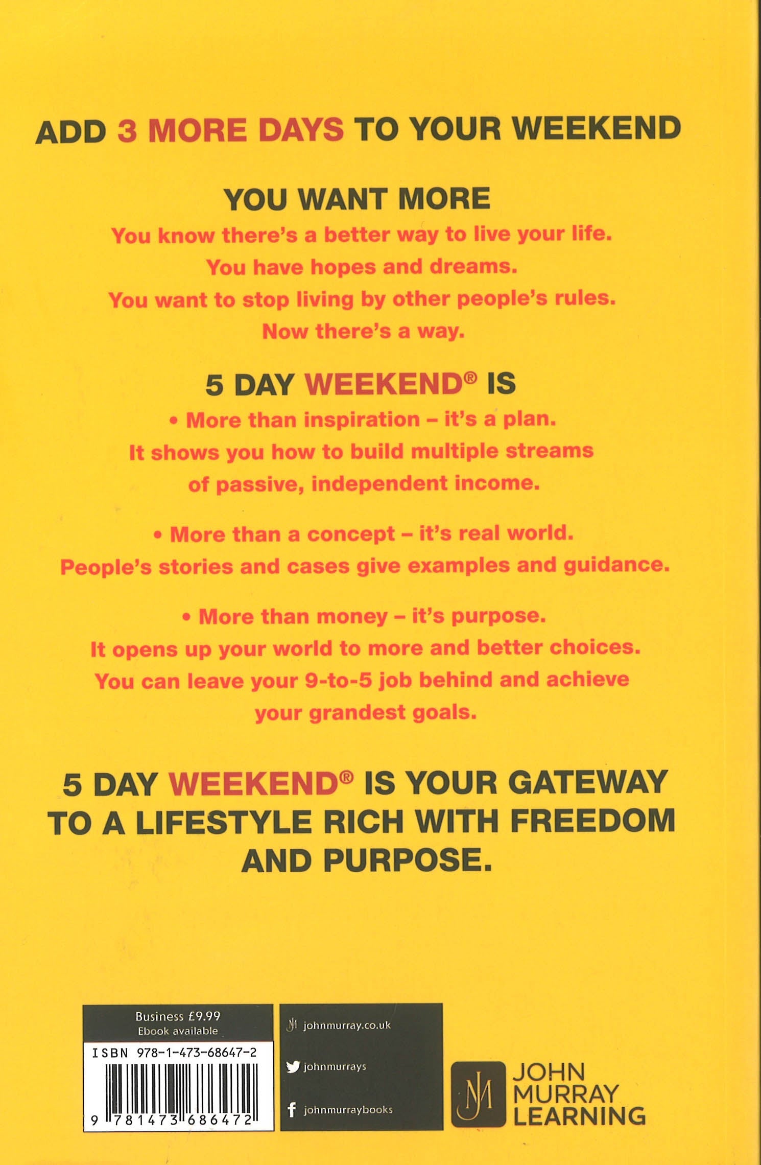 You know there's a better way to live your life. You have hopes and dreams. You want to stop living by other people's rules. Now there's a way. 5 DAY WEEKEND® shows you how to build multiple streams of passive, independent income, opening up your world to more and better choices.