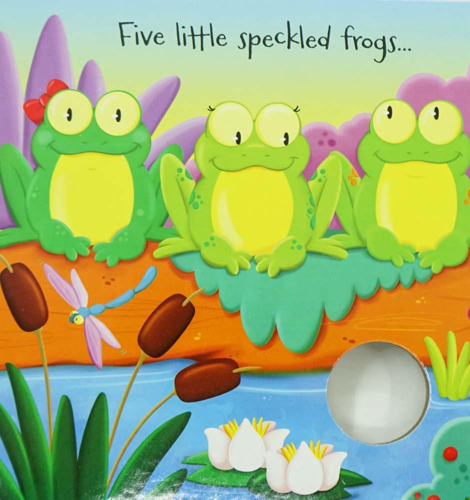 Count down with this classic interactive nursery rhyme and jump in the pond for playtime with these playful little frogs! With adorable artwork and a fun sound button to press, kids will love to sing along with this popular children's song.
