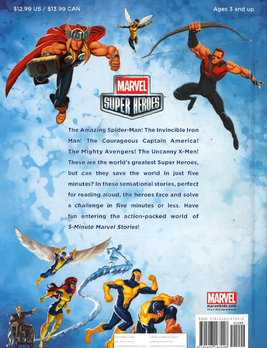 Marvel Super Heroes are quite busy saving the day from battling crooks and robbers to evil alien invaders, mutants, and super villains! Each of these twelve stories is the perfect length for reading aloud in about five minutes, making them perfect for jam-packed days. This treasury stars all your favorite Marvel Super Heroes-including Spider-Man and Iron Man-and features a padded cover, and action packed full-page and spot illustrations. Now the Super Heroes's adventures are the way to go before bedtime, on the go, or any moment!