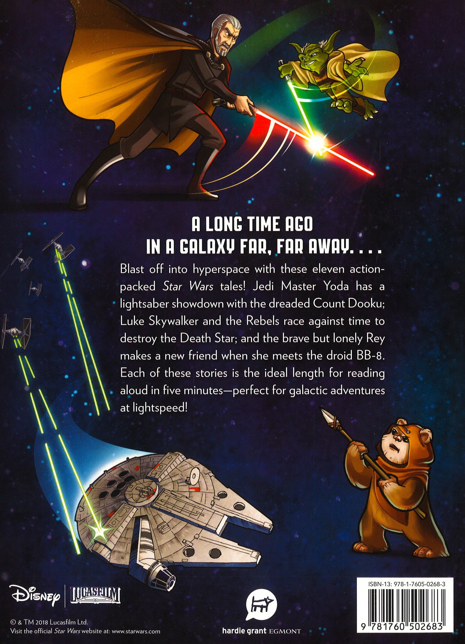 A long time ago in a galaxy far, far away.... Blast off into hyperspace with these eleven action-packed Star Wars tales! Jedi Master Yoda has a lightsaber showdown with the dreaded Count Dooku; Luke Skywalker and the Rebels race against time to destroy the Death Star; and the brave but lonely Rey makes a new friend when she meets the droid BB-8. Each of these stories is the ideal length for reading aloud in five minutes - perfect for galactic adventures at lightspeed!