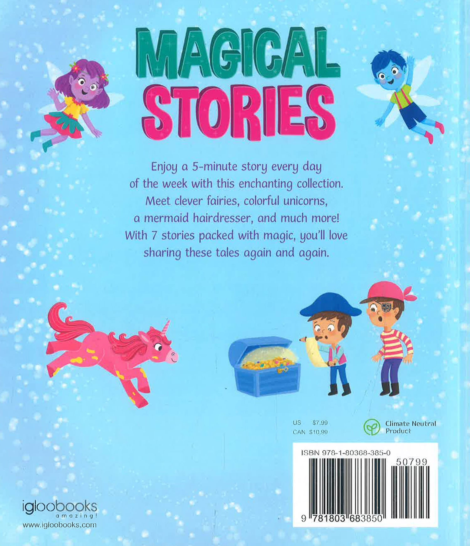 Delight in a daily 5-minute adventure throughout the entire week, as you encounter a delightful cast of characters, including clever fairies, vibrant unicorns, a mermaid with a flair for hairdressing, and a myriad of other magical beings. With a total of 7 mesmerizing tales, this compilation promises to captivate the hearts of both children and parents alike, ensuring endless moments of shared joy and cherished storytelling experiences. Prepare to embark on an unforgettable journey through the realms of fantasy and creativity, creating cherished memories as you revisit these enchanting narratives time and time again.