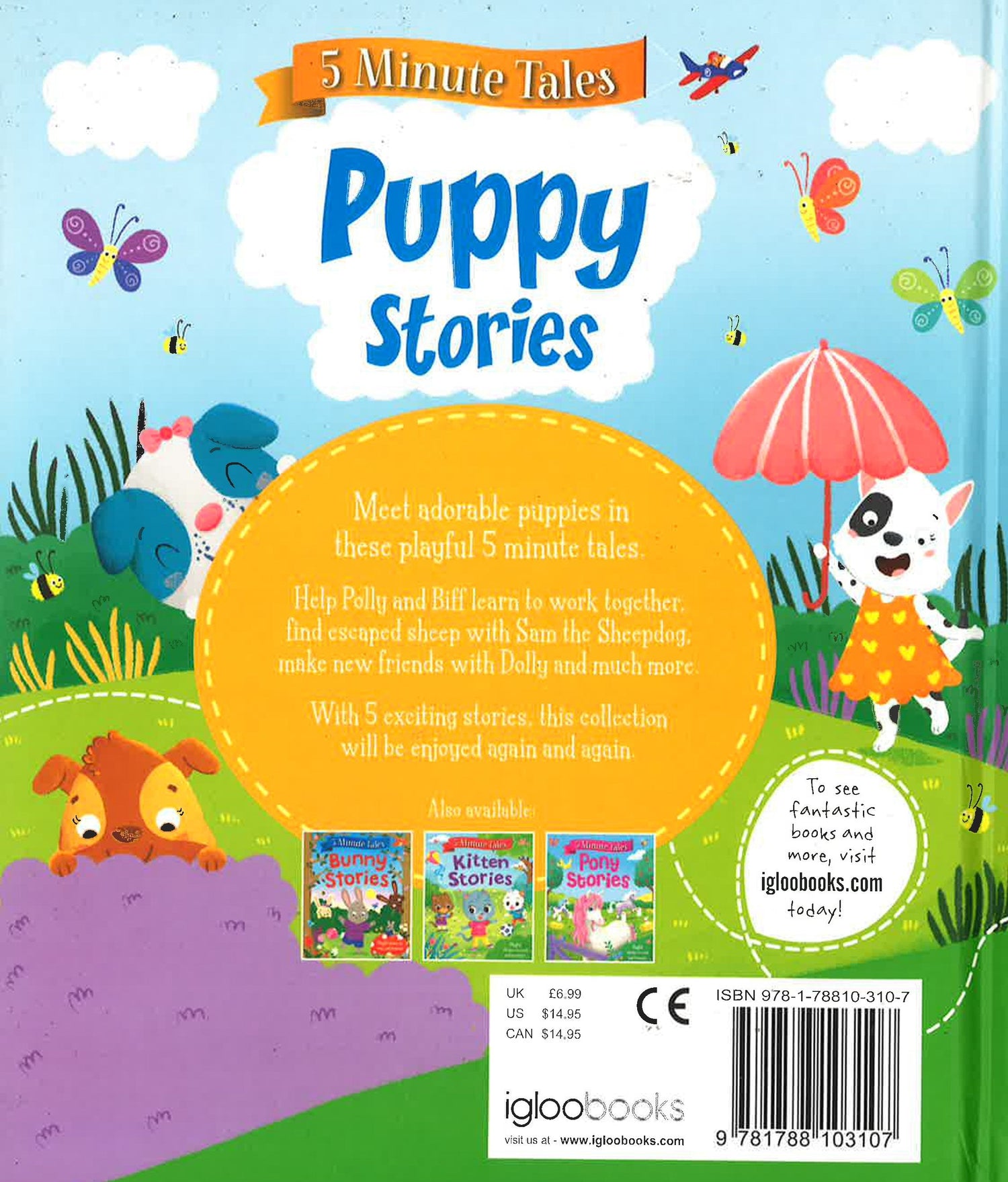 Meet adorable puppies in these playful 5 minute tales. Help Polly and Biff learn to work together,find escaped sheep withSam the Sheepdog,make new friends with Dolly and much more.With 5 exciting stories, this collectionwill be enjoyed again and again.