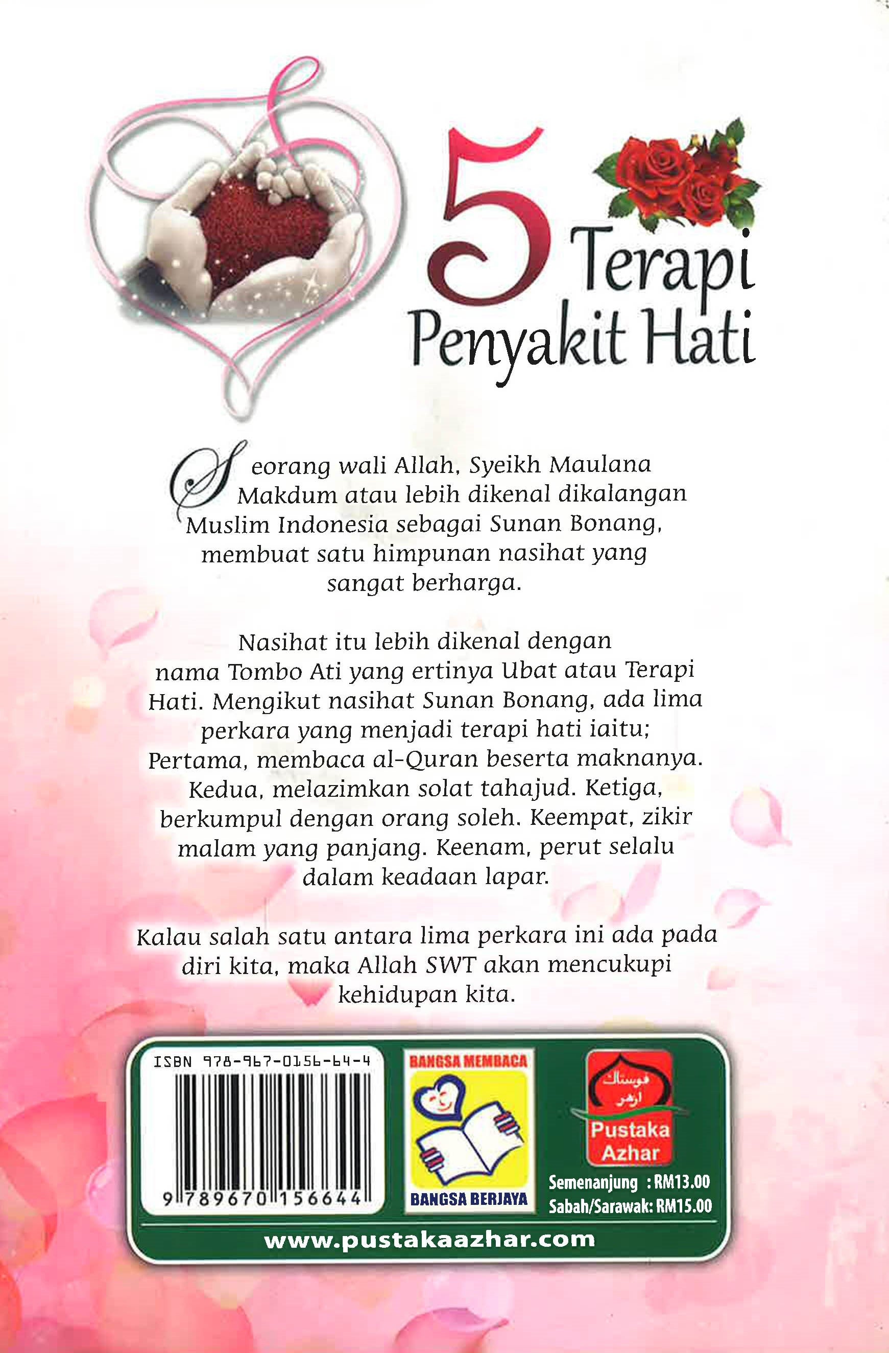 Nasihat itu lebih dikenal dengan nama Tombo Ati yang ertinya Ubat atau Terapi Hati. Mengikut nasihat Sunan Bonang, ada lima perkara yang menjadi terapi hati iaitu: