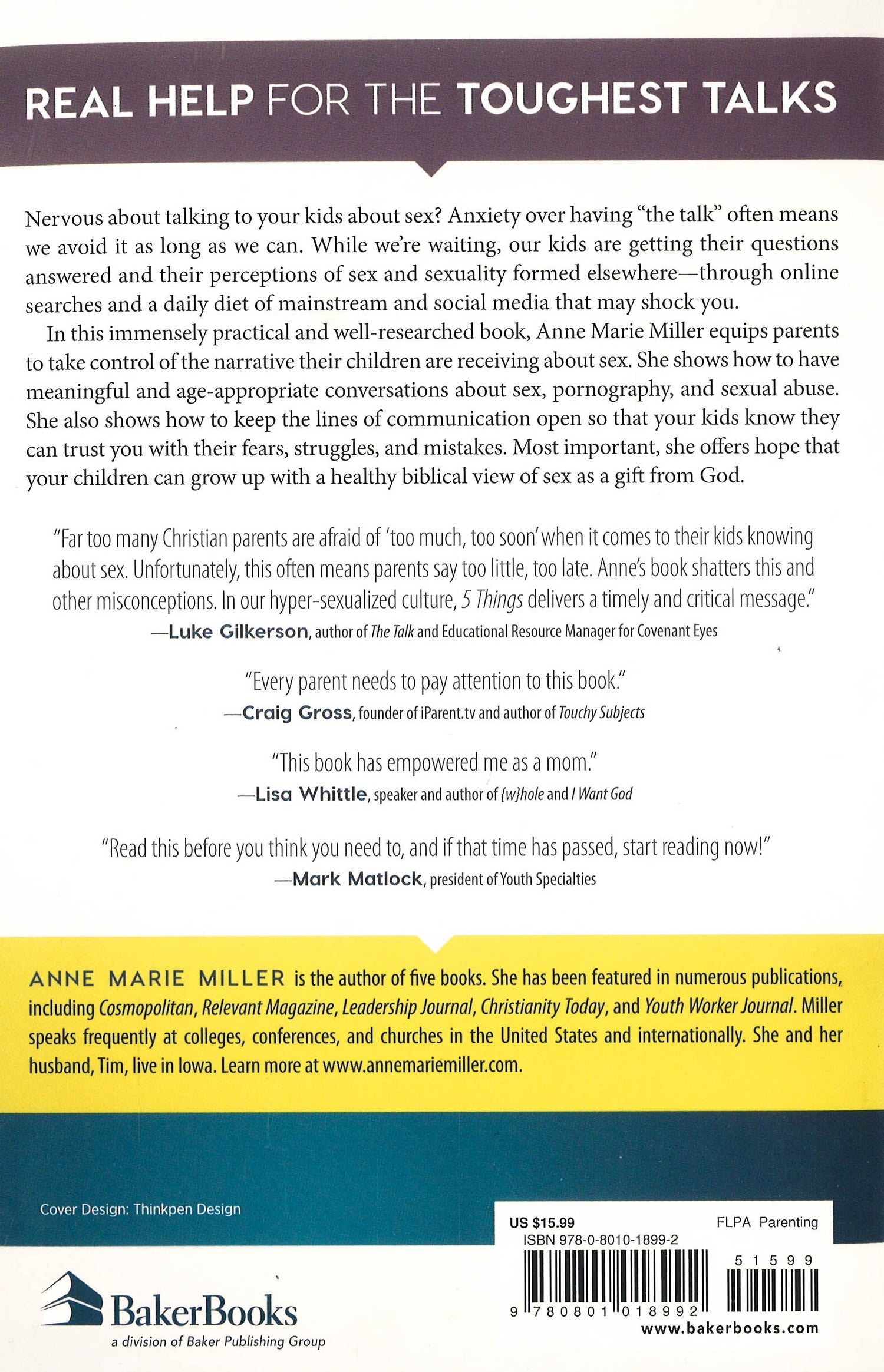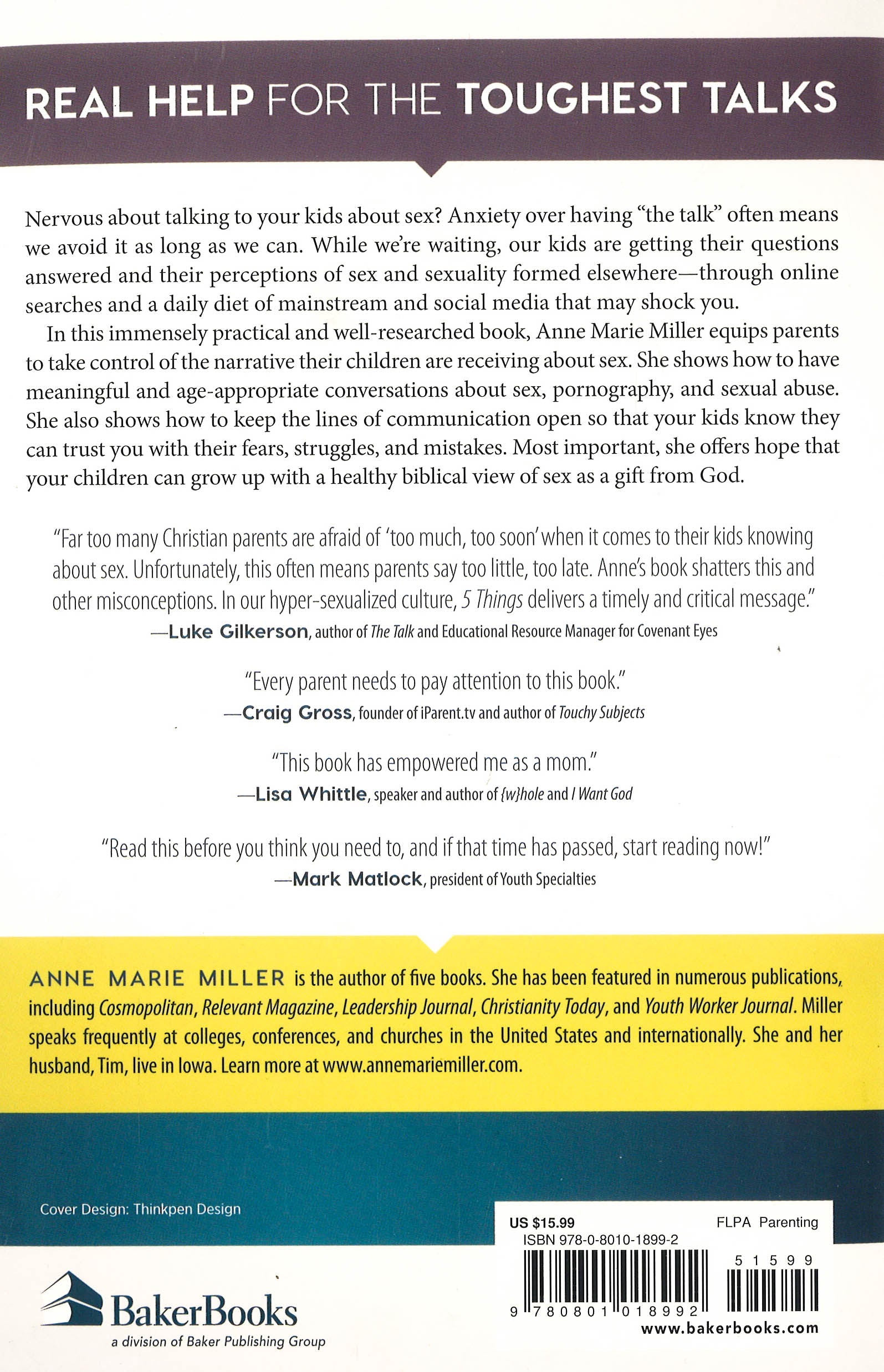 Most parents dread talking about sex with their children. Anne Marie Miller loves giving "the talk." As she has shared her personal story and talked about God's gift of sex with almost half a million young people, she's noticed some disturbing patterns: - Google is how kids learn about sex- Kids are learning about sex and viewing pornography earlier than parents think- The sexually abused often don't tell anyone for fear of getting in trouble- Sexual messages are being consumed daily through mainstream and social media- Most parents think their child is the exception Instead of sweeping this topic under the rug, Miller wants to change the narrative. In this immensely practical and well-researched book, she equips parents to have meaningful and age-appropriate conversations with their children about sex, pornography, and sexual abuse. She advises parents on how to keep the lines of communication open so that their children know they can trust them with their fears, struggles, and mistakes. Most important, she offers hope to worried parents that their children can grow up with a healthy biblical view of sex as a gift from God.