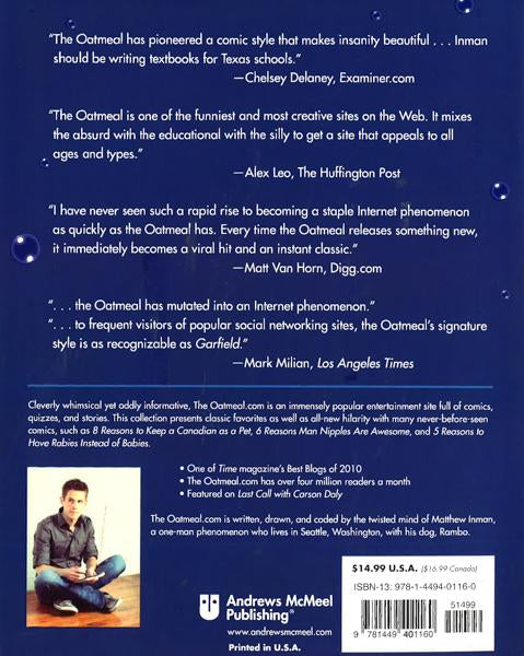 In Matthew Inman\'s 5 Very Good Reasons to Punch a Dolphin in the Mouth (And Other Useful Guides), samurai sword-wielding kittens and hamsters that love .50-caliber machine guns commingle with a cracked out Tyrannosaur that is extremely hard to potty train. Bacon is better than true love and you may awake in the middle of the night to find your nephew nibbling on your toes. Inman creates these quirky scenes for theoatmeal.com, which launched in July 2009 and already has more than 82 million page views. In fact, every 15 to 30 seconds, someone Googles one of theoatmeal.com\'s creations. Now, 60 of Inman\'s comic illustrations and life-bending guides are presented in full-color inside 5 Very Good Reasons to Punch a Dolphin in the Mouth (And Other Useful Guides). Consider such handy advice as: * 4 Reasons to Carry a Shovel at All Times * 6 Types of Crappy Hugs * 8 Ways to Tell if Your Loved One Plans to Eat You * 17 Things Worth Knowing About Your Cat * 20 Things Worth Knowing About Beer