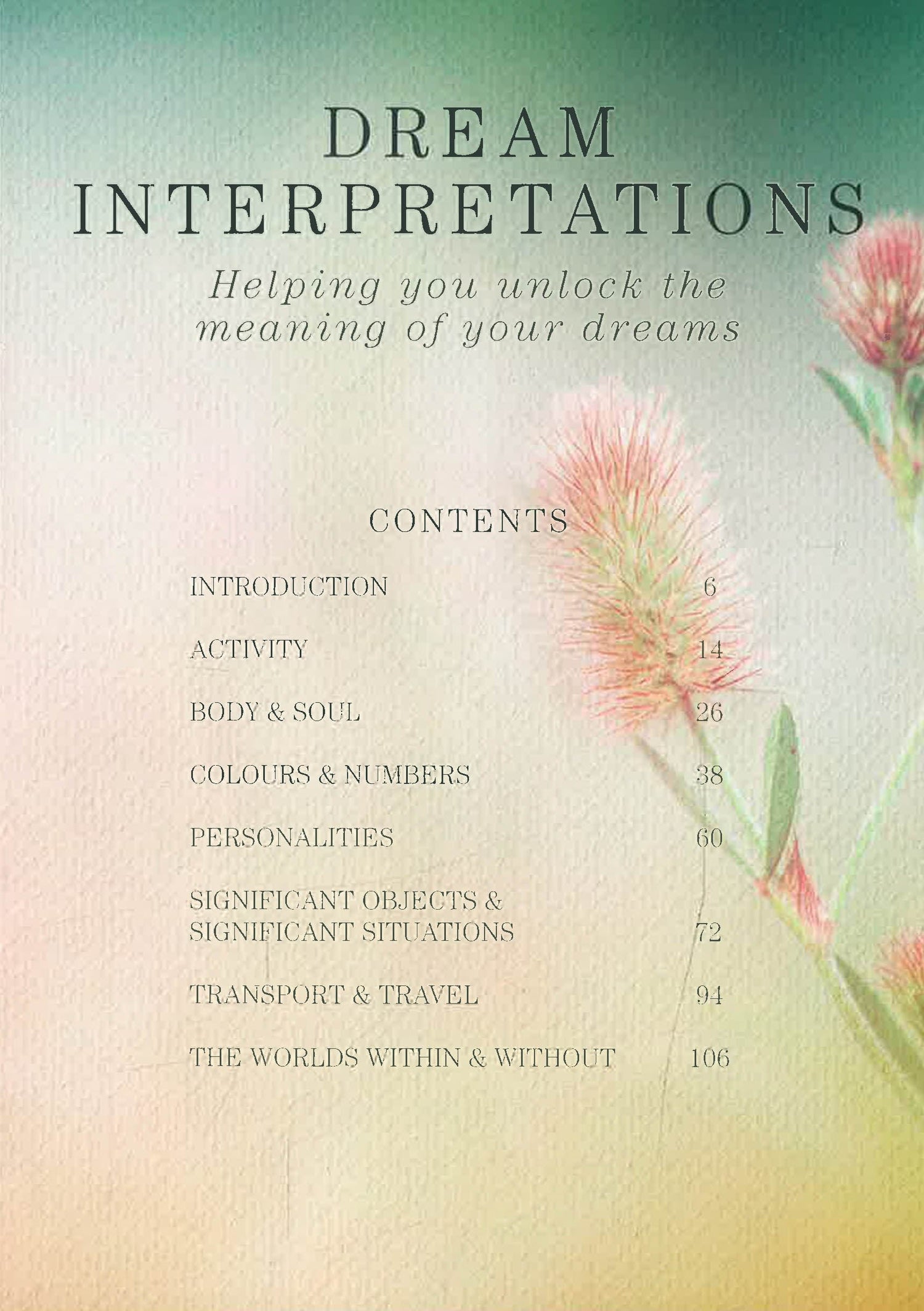 Although we may not always remember our dreams, we experience them on a nightly basis. From flying through the air, to being stuck at traffic lights, our dream-world can be puzzling and profound. These 50 dream interpretations of symbols and scenarios will provide you with tools to discover their meaning.