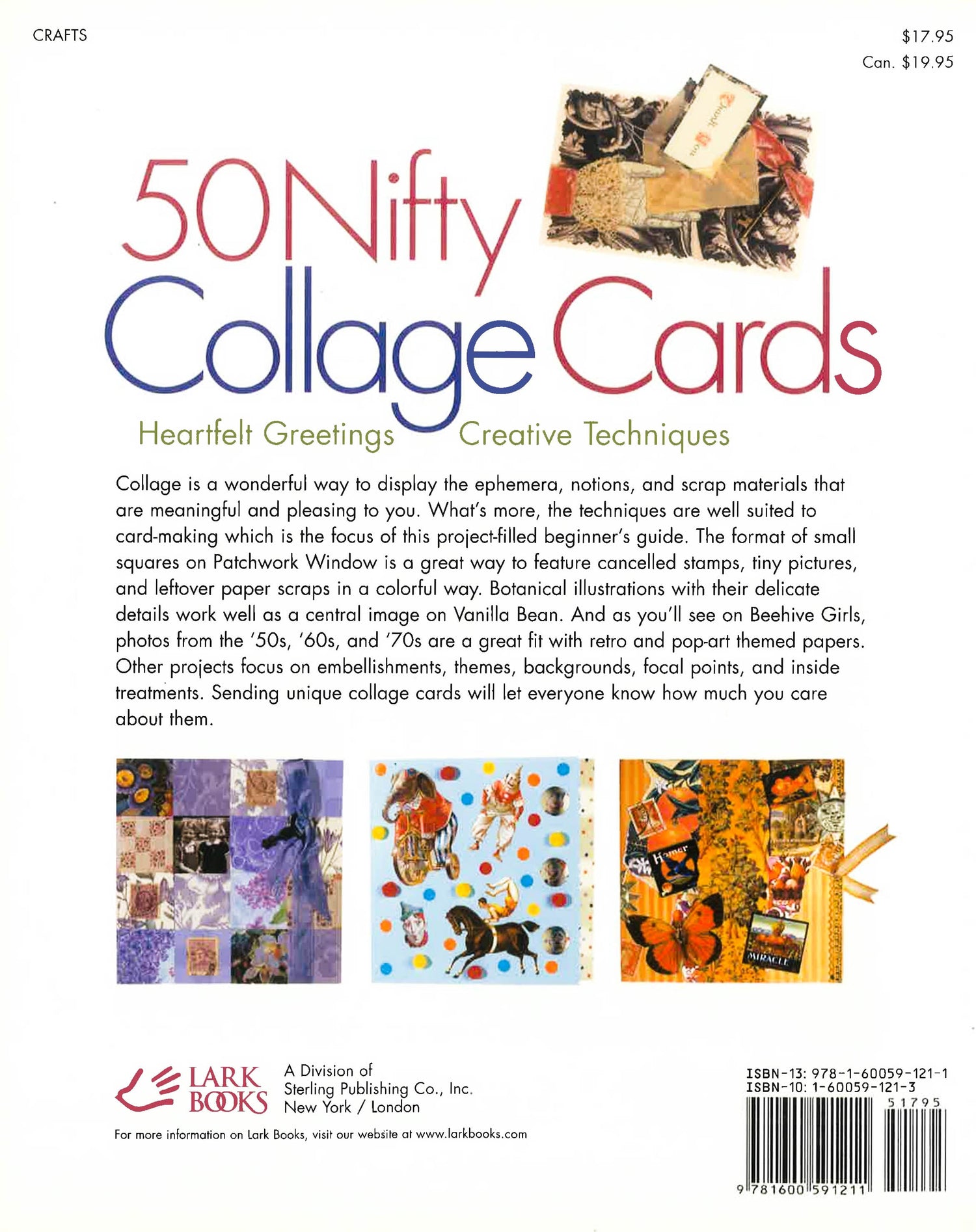Cardmaking and collage go together like birthdays and cake! They’re both accessible crafts that allow great freedom of expression and provide a clever way to use those inevitable studio scraps and ephemera. That’s why Collage Cards is the perfect debut book in this brand-new beginner-friendly series on creative card crafting. It offers approximately 50 inspirational projects, with seven themed chapters that cover everything from focal points and photographs to embellishments, backgrounds, and inside treatments. Incorporate used dress patterns, with its tea-colored tissue paper and interesting arcs and arrows. Evoke Paris with the lush flowers on French perfume labels. Go charmingly vintage, with old-fashioned children’s art. Tips, insights, and card variations show how even the simplest alterations can transform a layout.