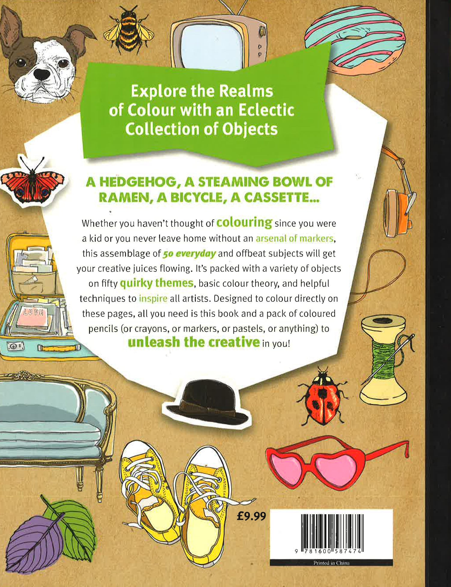Explore the Realms of Color with an Eclectic Collection of Objects A hedgehog, a steaming bowl of ramen, a bicycle, a cassette...Whether you haven't thought of colouring since you were a kid or you never leave home without an arsenal of markers, this menagerie of 50 everyday and offbeat subjects will get your creative juices flowing. It's packed with a variety of objects on fifty quirky themes, basic color theory, and helpful techniques to inspire all artists. Designed to color directly on these pages, all you need is this book and a pack of colored pencils (or crayons, or markers, or pastels, or anything) to unleash the creative in you!