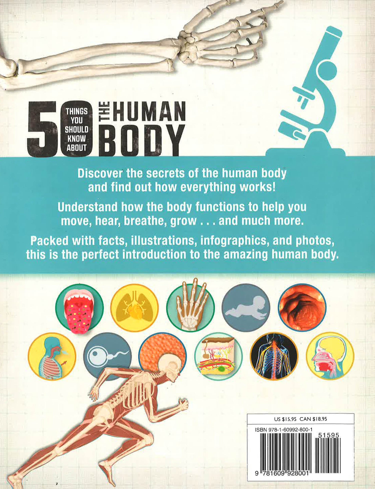 The human body is complicated and incredible! The many parts of the body form a network of systems that work together to keep you alive and active. Each chapter focuses on a different system: Outer Body, Nervous System, Skeleton and Muscles, Breathing System, Heart and Blood, Digestive System, Urinary System, Growing and Changing. Body maps are included to show how organs and systems all function together. The mechanics of the human body are described in concise and easy-to understand text while infographics and photographs bring the various systems to life. Fact panels provide fascinating snippets of extra information.