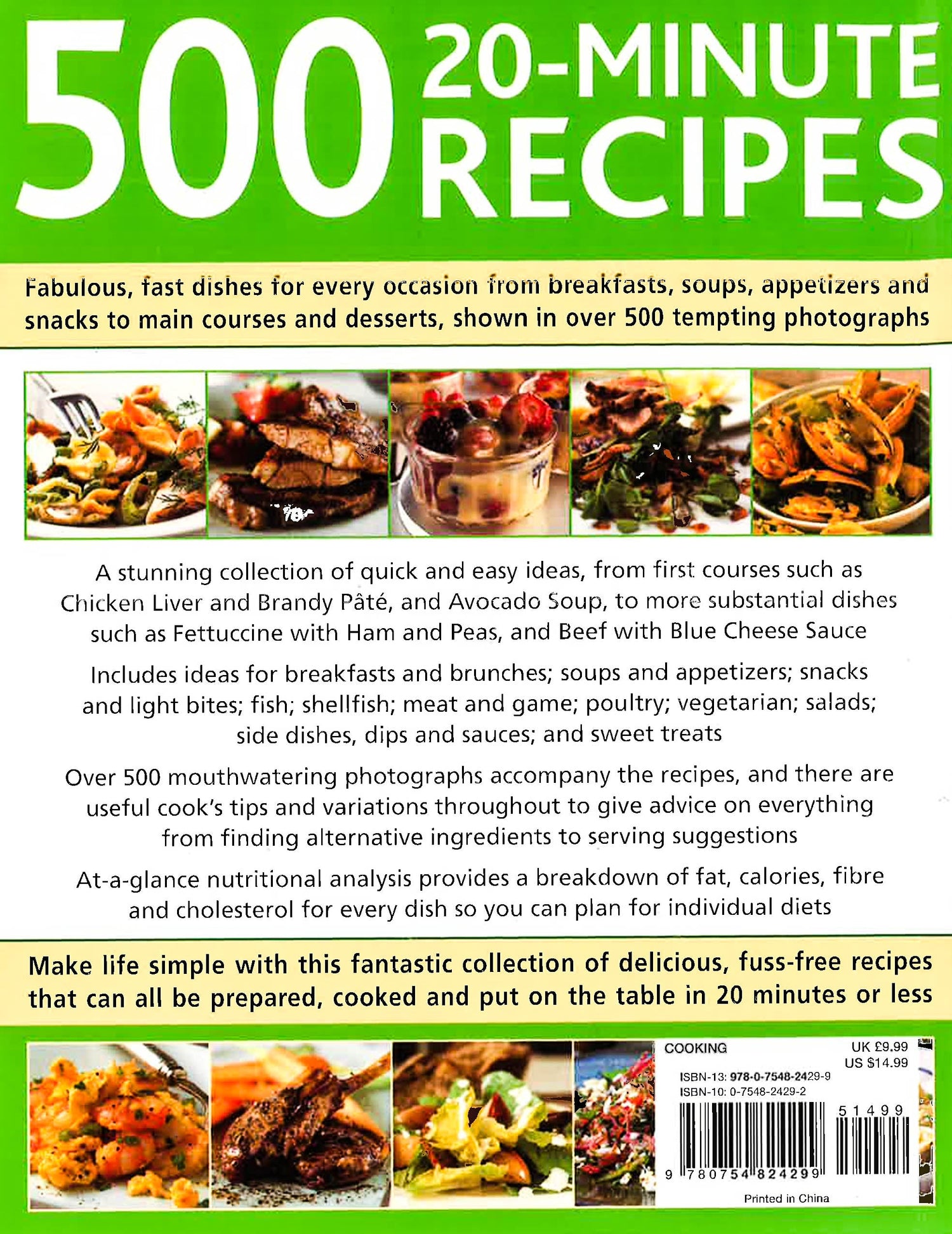A superb collection of 500 quick and easy recipes that can be prepared and served in 20 minutes and less.