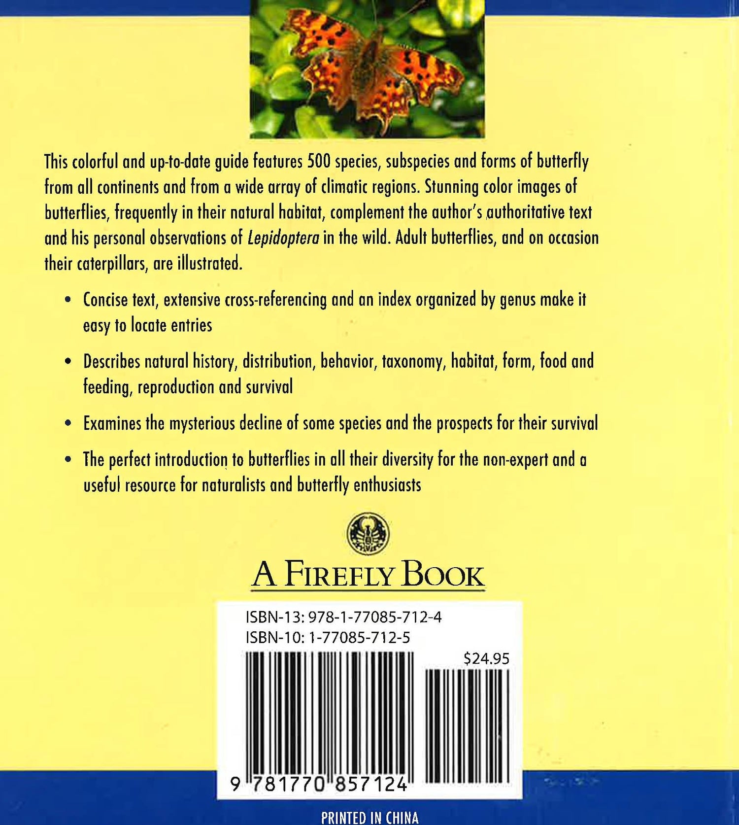This colorful and up-to-date guide features 500 species, subspecies and forms of butterfly from all continents and from a wide array of climatic regions. Stunning color images of butterflies, frequently in their natural habitat, complement the author's authoritative text and his personal observations of Lepidoptera in the wild. Adult butterflies, and on occasion their caterpillars, are illustrated.